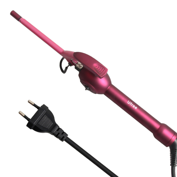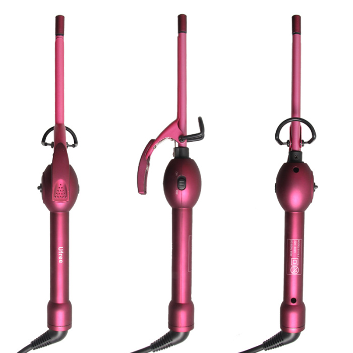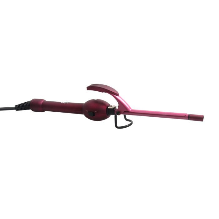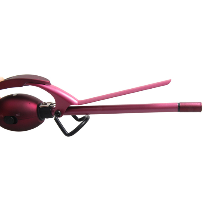 2. Open the clamp, take one section of hair at a time and place the end over the barrel. Then close the clamp, making sure that the ends extend just a bit beyond the clamp.