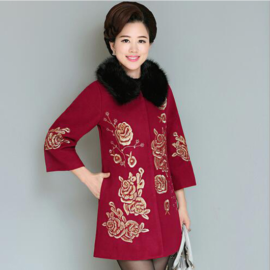 old thickened wool coat embroidered retro nine sleeve jacket mother