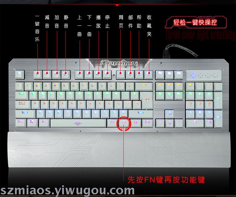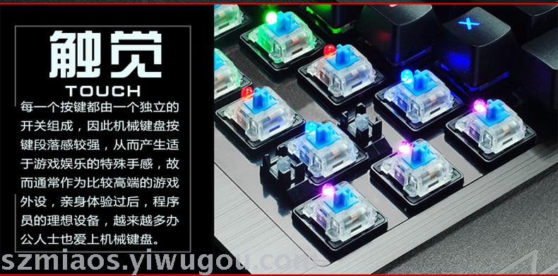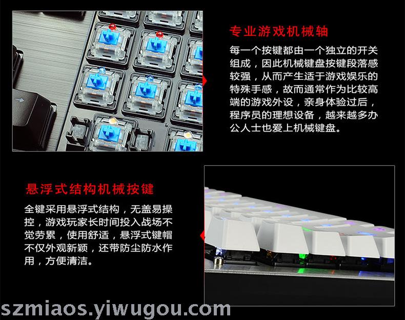 (1)True mechanical keyboard, Blue switch (very crisp key press sound).