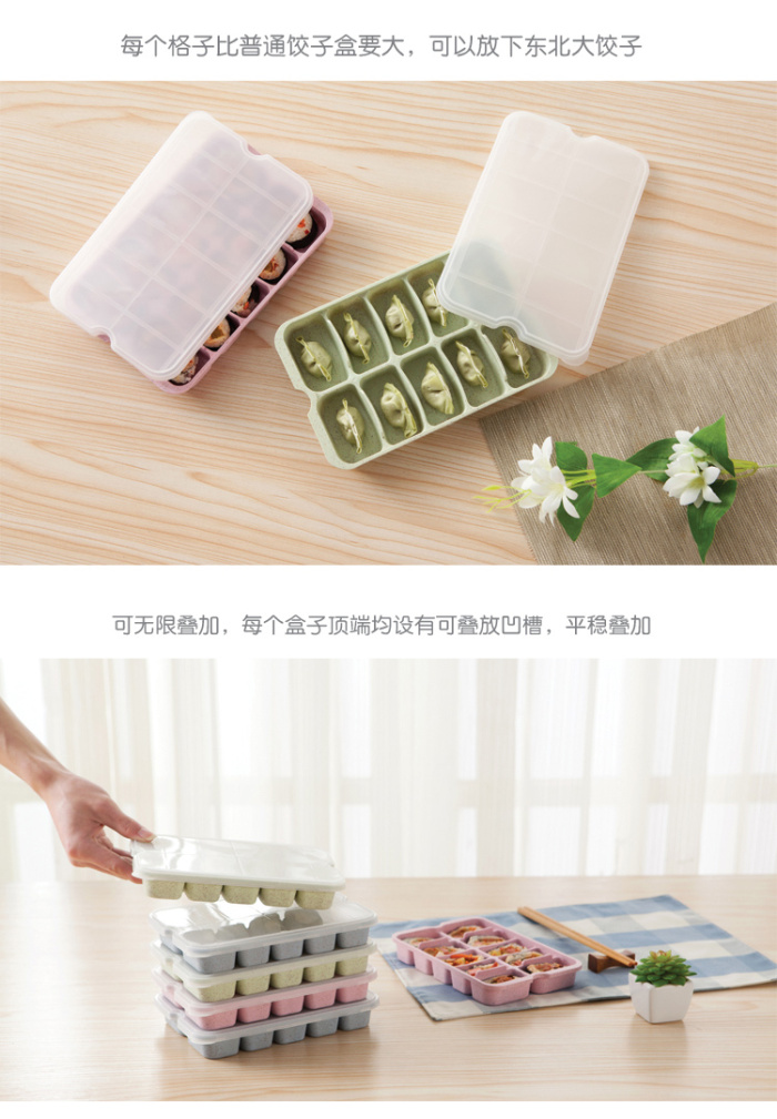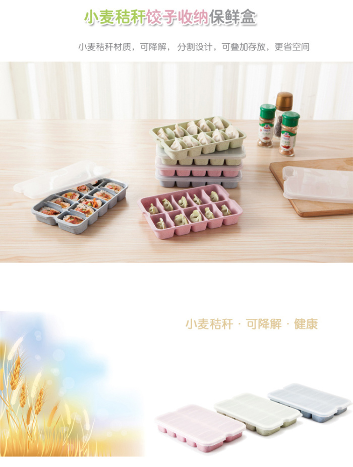 PP+ wheat straw material, healthy and environmentally friendly, independent design, storage for dumplings and wontons, can be stacked to save space. |