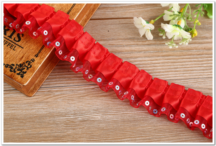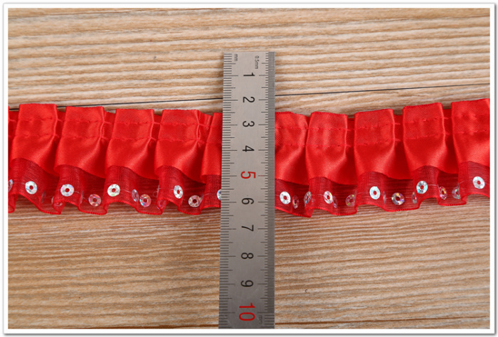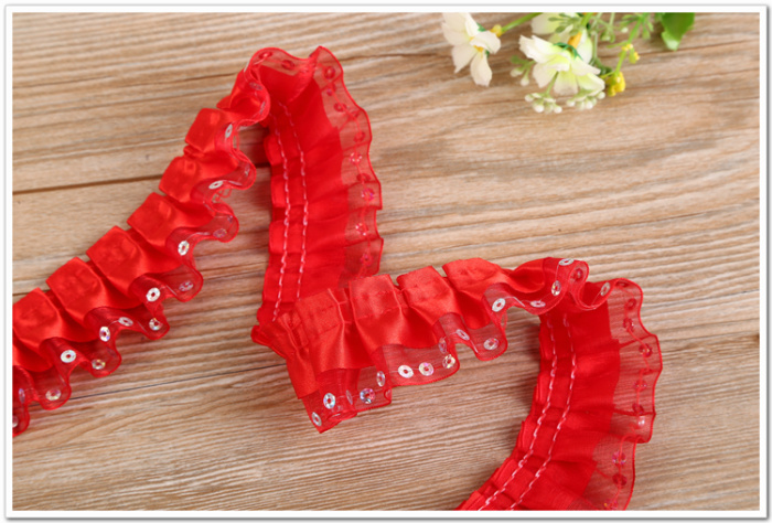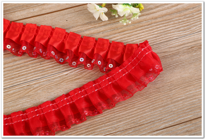 Yanjie lace red double sequins ruffle lace discount