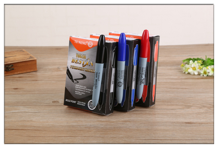 About Product:139 permanent marker adopts brand new materials, the pen head is 2.5mm, the use of waterproof ink, smooth writing, bright color, exquisite appearance, cap of a pen at small hook can be easily carried on the body, you can add water, quality assurance, there are three colors of red, blue and black, 12 × 80 boxes = 960 pen heads are round, if there is a square head, you can also do it, you can customize samples and print