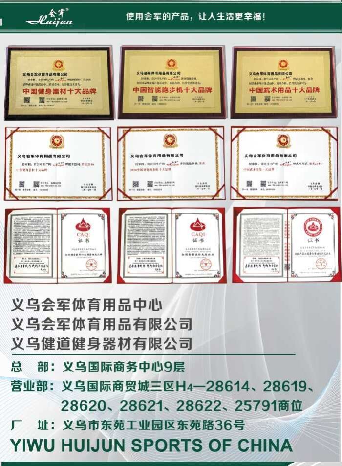 China has won the top ten brands of Chinese fitness equipment, the top ten brands of Chinese martial arts supplies, the top ten brands of Chinese intelligent treadmill, the quality of the national fitness equipment industry leading brand, the integrity of the quality of advanced enterprises, the integrity of the national product and service model enterprises.