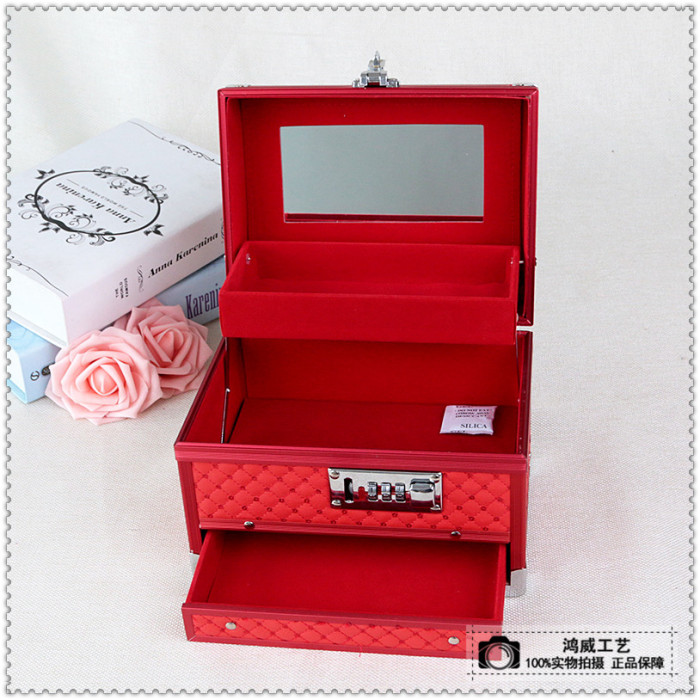 red double layers password cosmetic case with mirror cosmetic case
