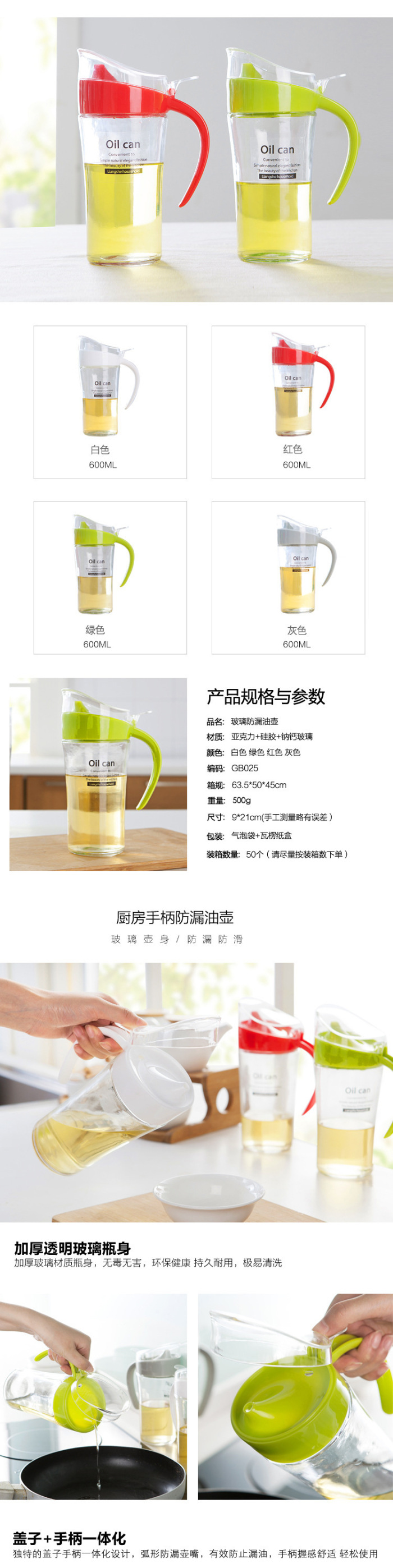 Large Glass Oil Pot Leak-Proof Spice Jar Oil Bottle Soy Sauce Bottle Vinegar Bottle Vinegar Pot