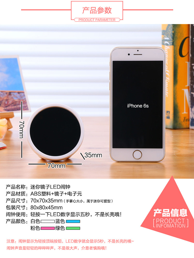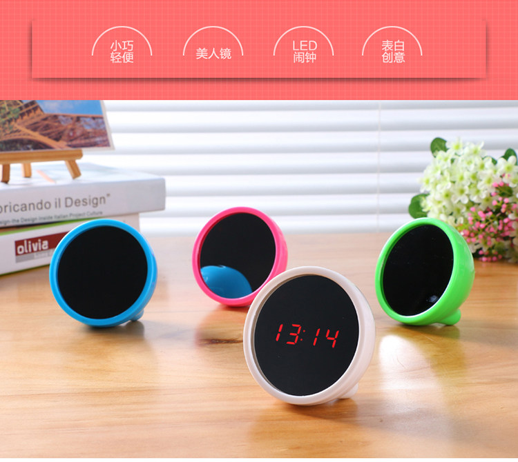 The Fairy Tale of Time·Creative Mirror Clock, it can be used as a mirror when not using an alarm clock.No one could have imagined that her mirror was also a multi-functional LED clock.Gently press the silver strip button at the top, and the mirror surface miraculously displays the time,Red LED digital displays will catch everyone's eye.Amazed and envious! The size of the palm is mini and adorable!Can be used as a birthday gift for girlfriends and girlfriends!Tell her: take care of the one in the mirror, she's good, I'm good too.