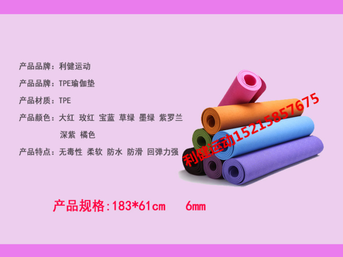 183 * 61cm * 6mmtpe fitness anti-slip odorless yoga mat
