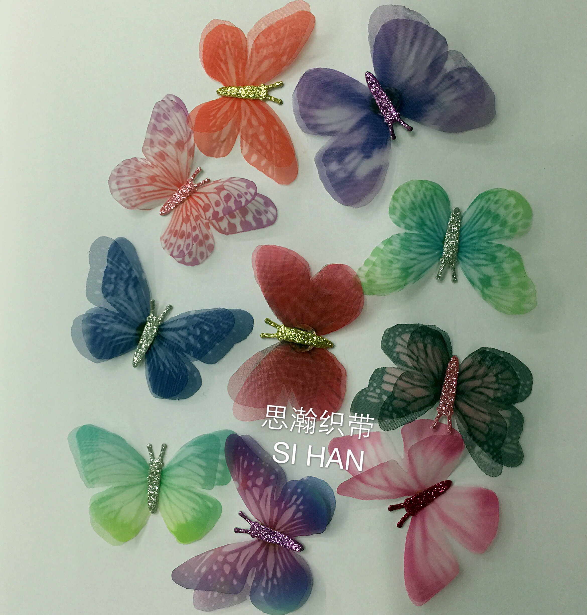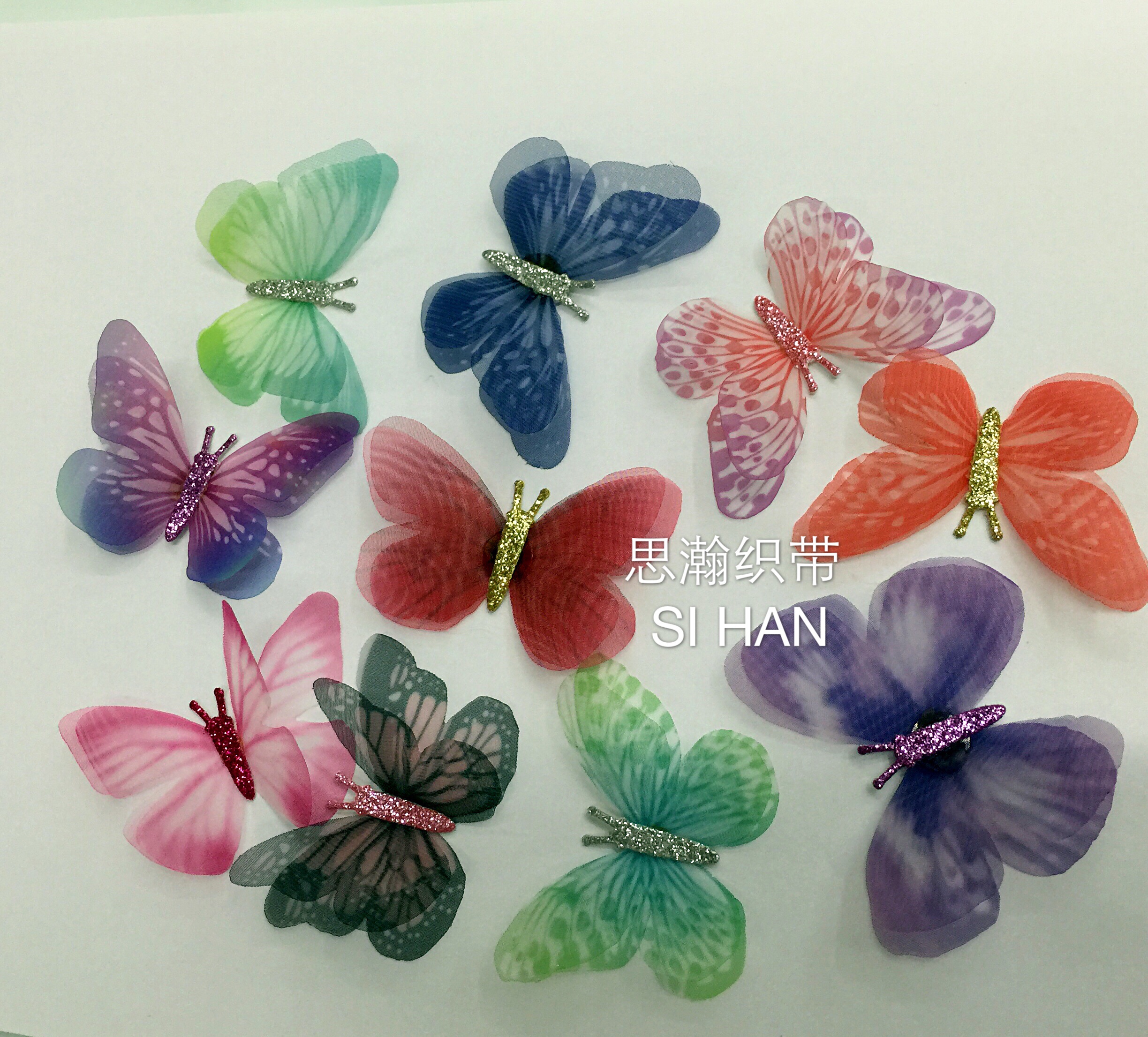 Three-Dimensional Butterfly Yarn Butterfly Various Barrettes Earrings Clothing Decorative Butterfly 15 Colors in Stock
