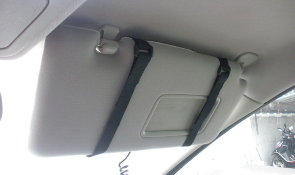 安装方法:将后背左右两根绑带直接套在汽车遮阳板前置位置即可。