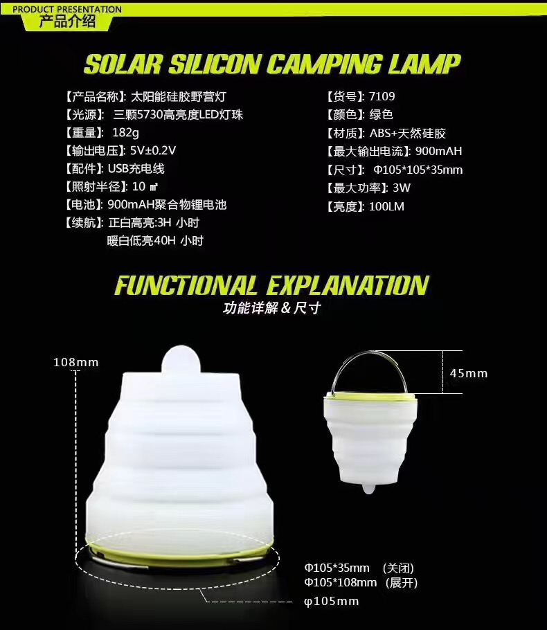 Folding tents lights, mini tents lights. This product silicone material, easy to carry retractable.