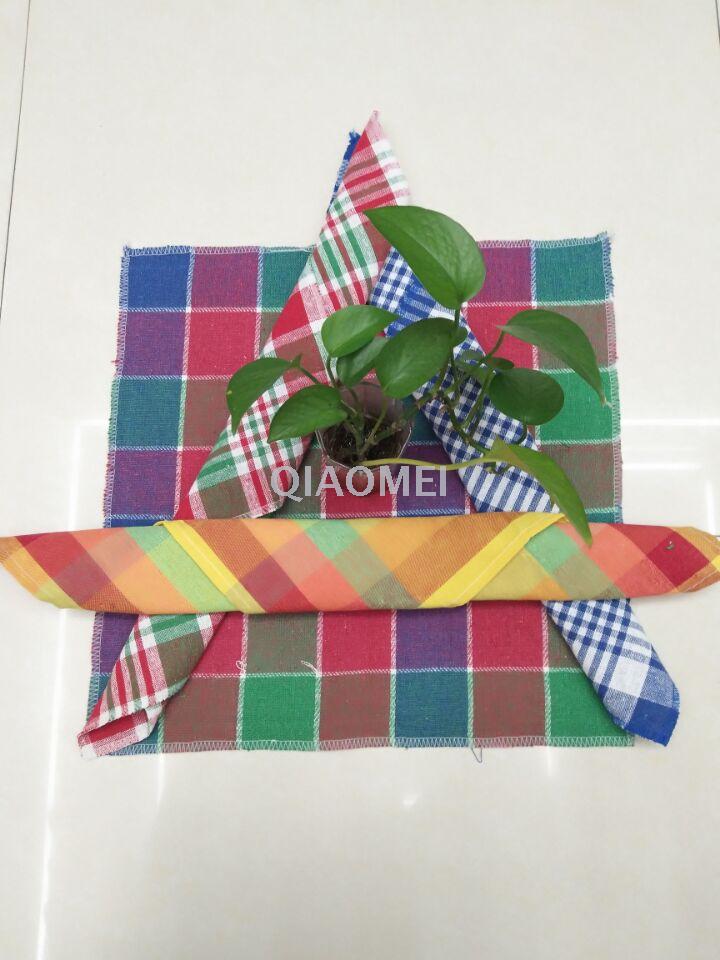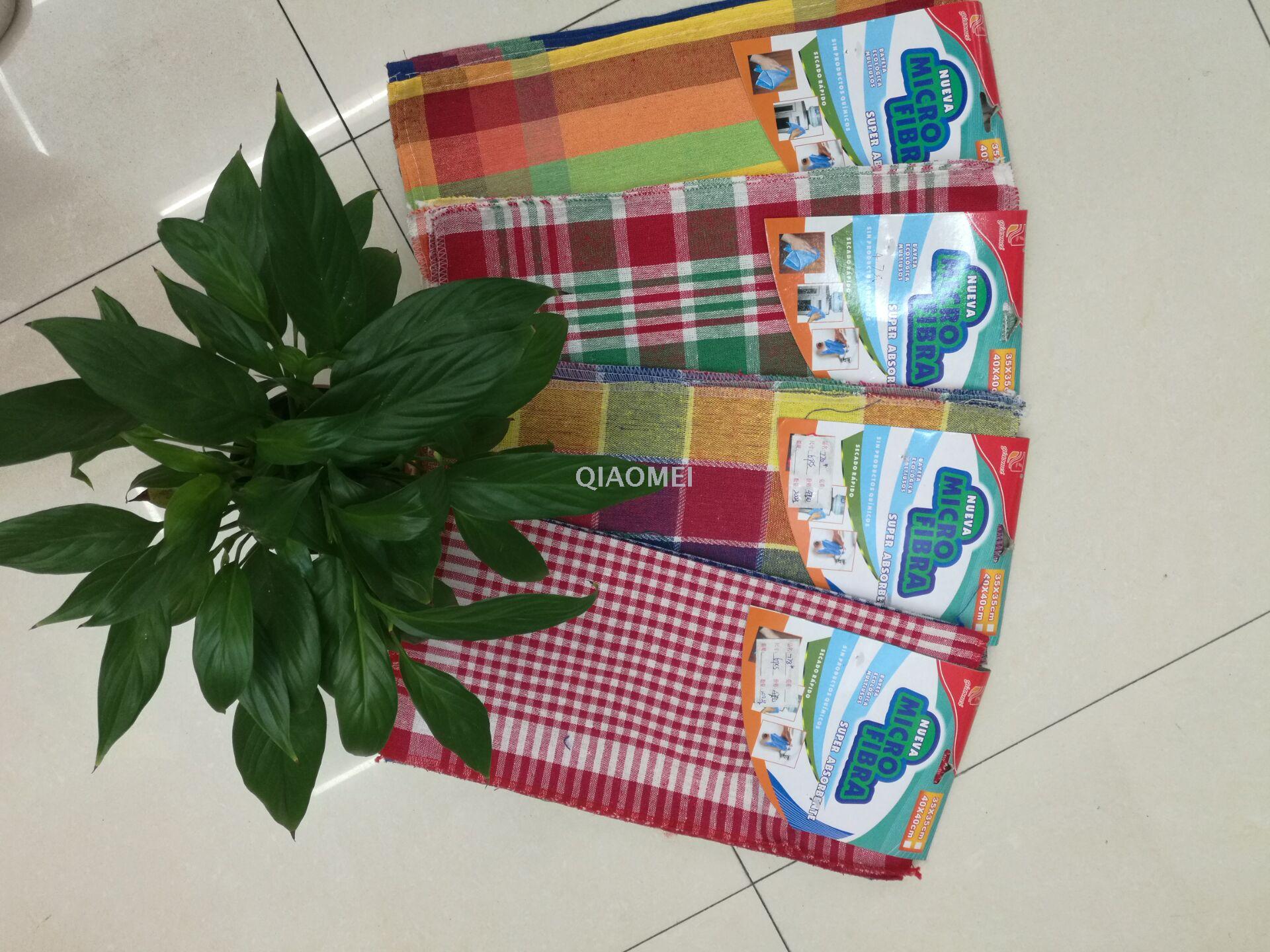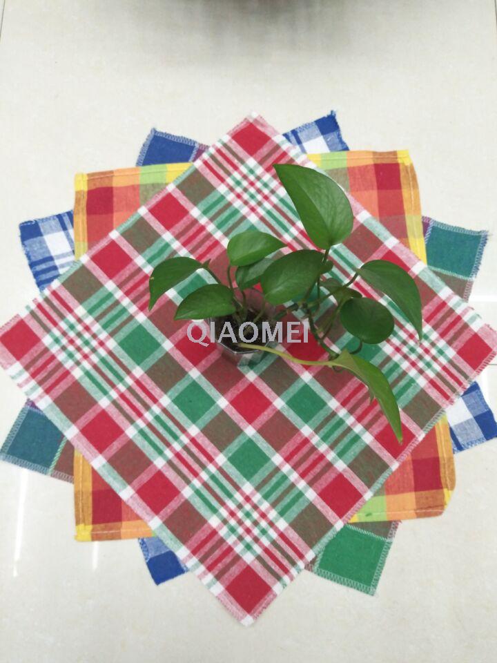 The Qiaomei Daily Goods Factory is located in Yiwu, China's Small Commodities City, specializing in the weaving of tea towels, dishcloths, and dishwashing cloths. This tea towel is made of 100% cotton, which has good absorbency. The size is 40*40CM, and it can be sold in a set of 3 or a set of 6. The colors are novel, mainly using red, green, blue, and yellow combinations. It is a good choice for household kitchen cleaning and table cleaning.