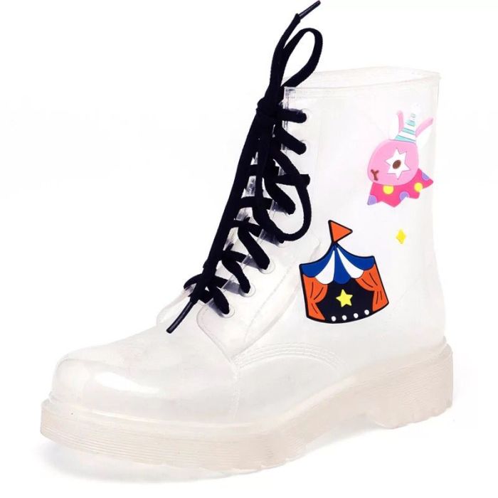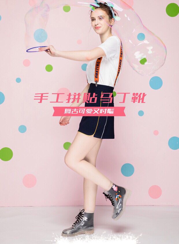 new fashion hand-painted women's low-cut rain boots water boots rubber shoes transparent rain boots women