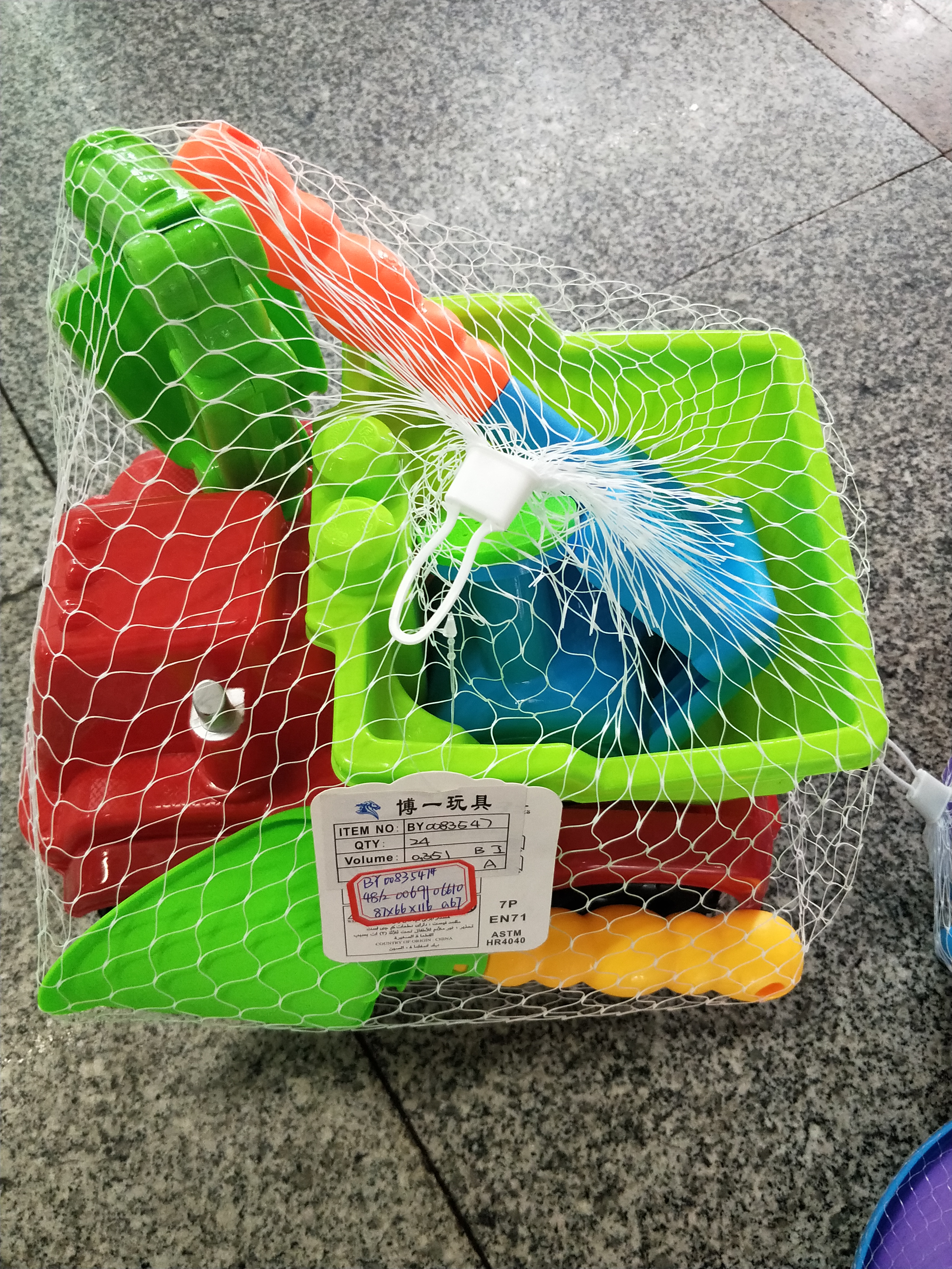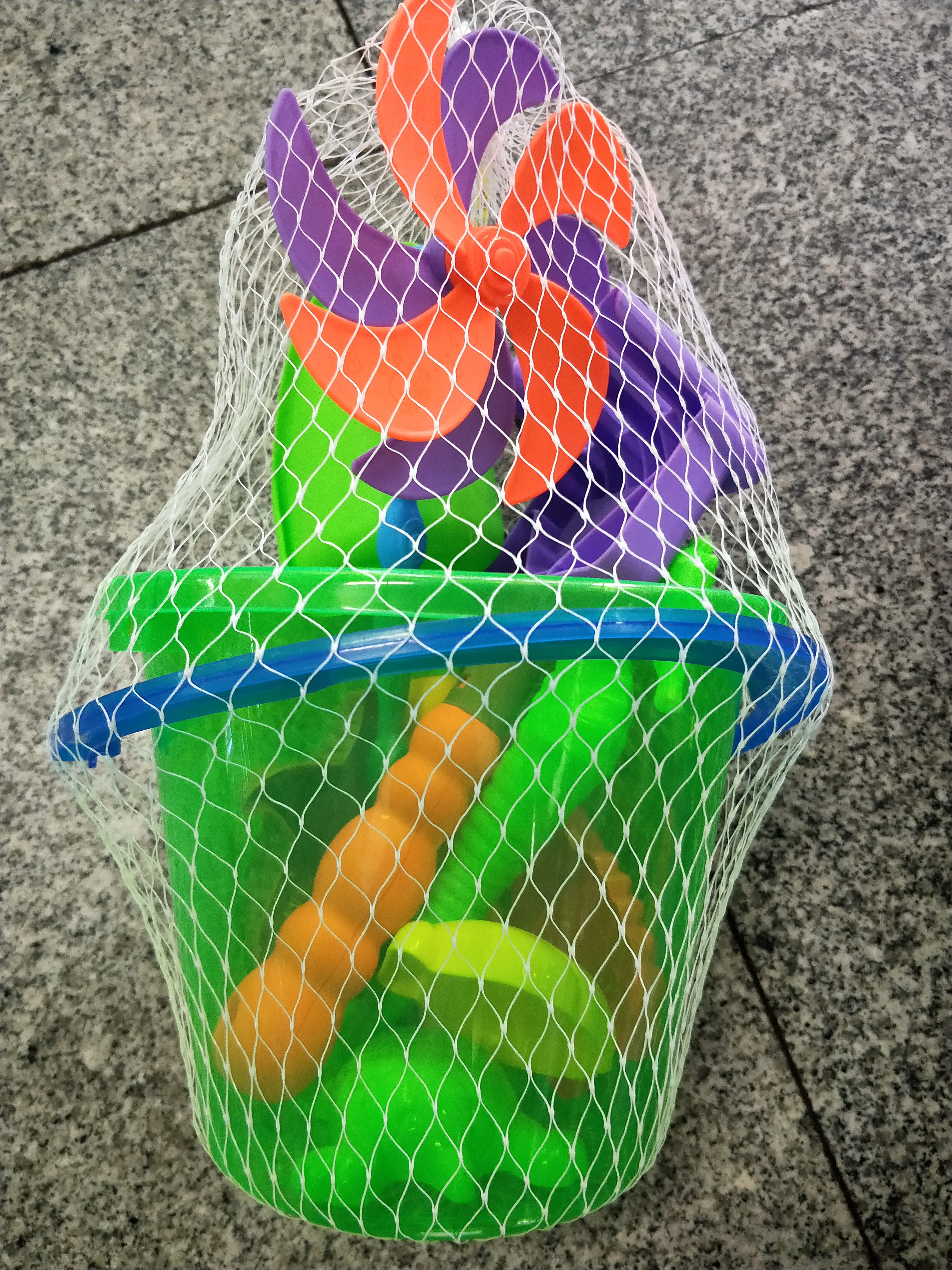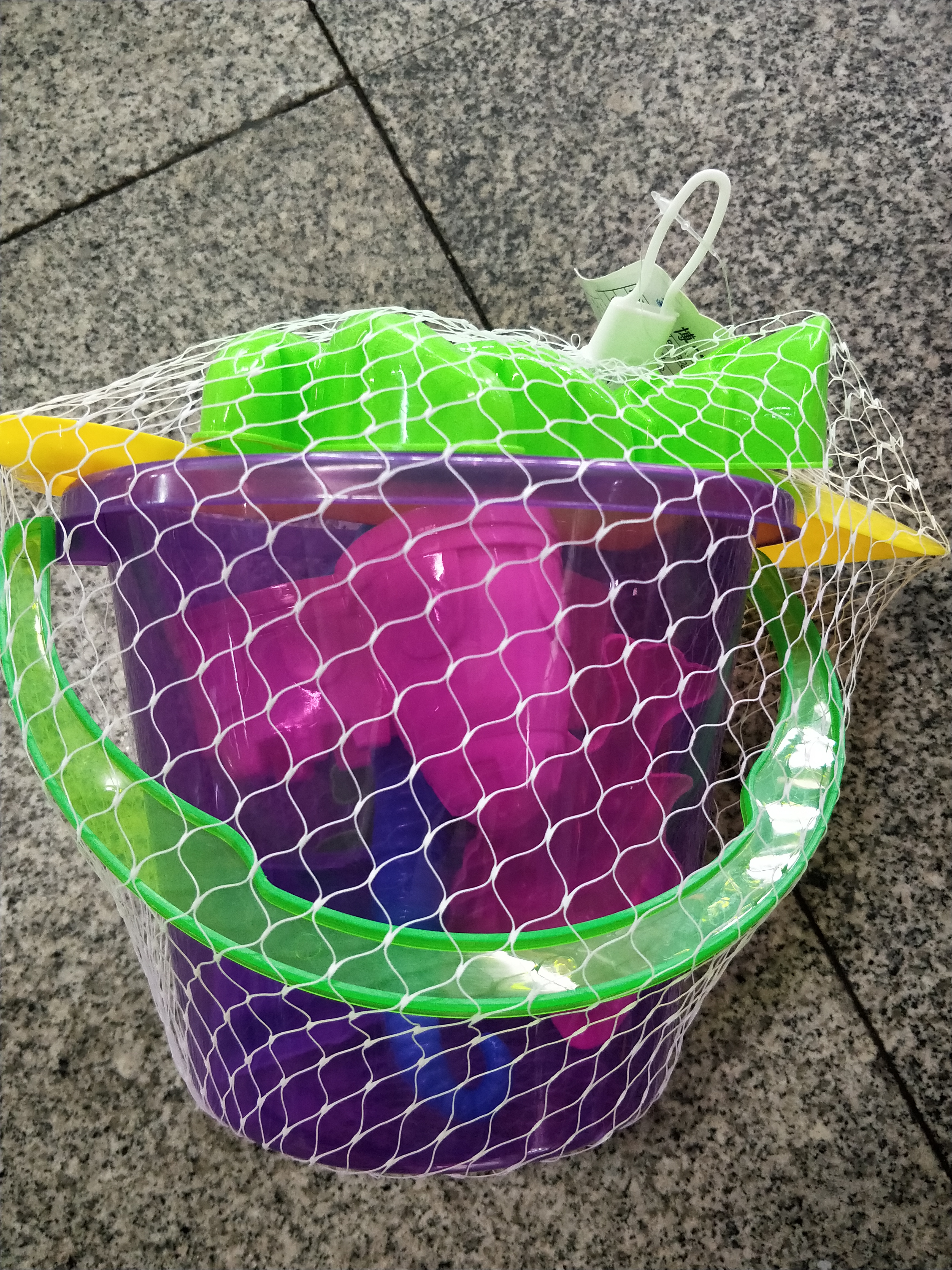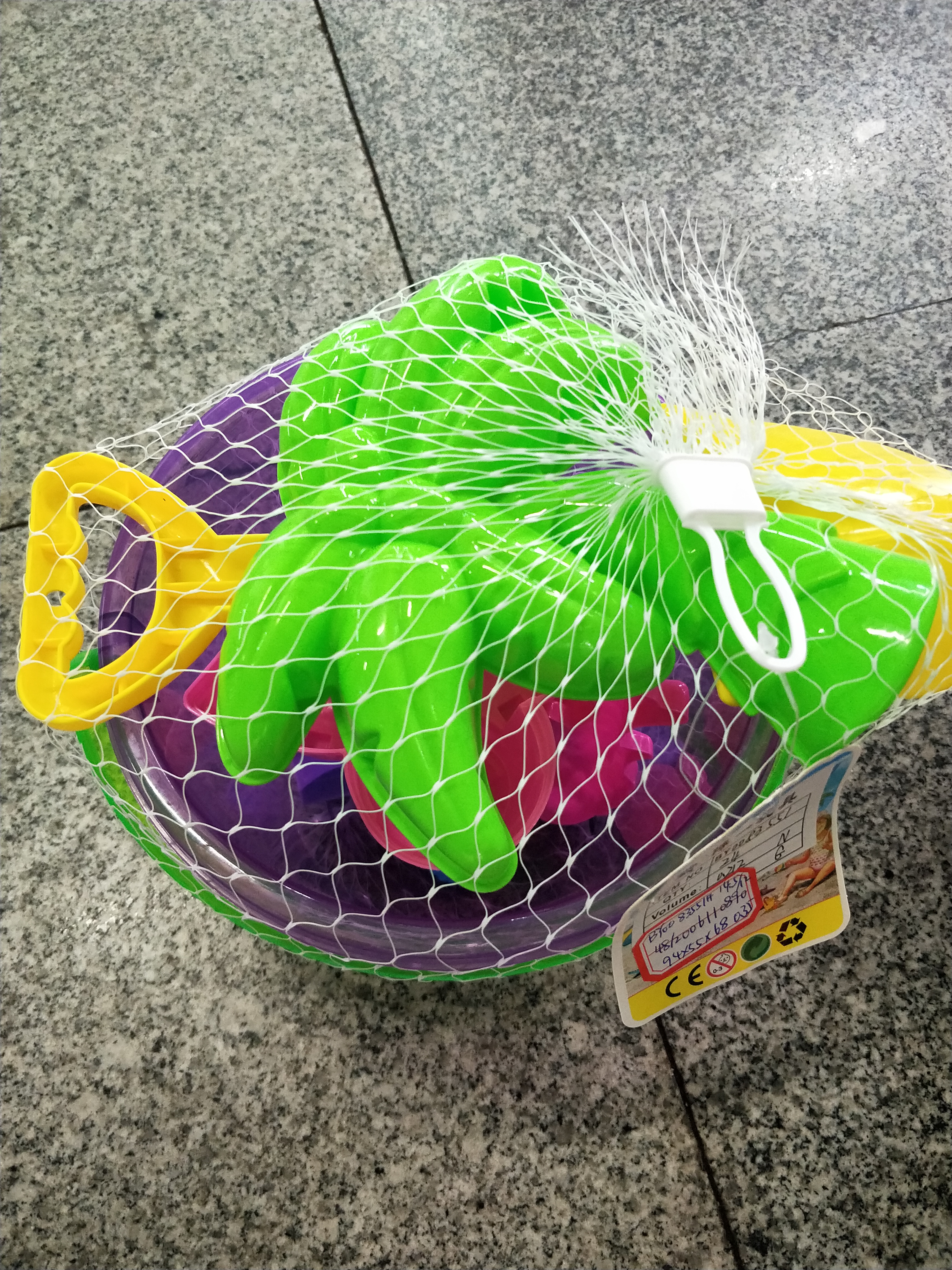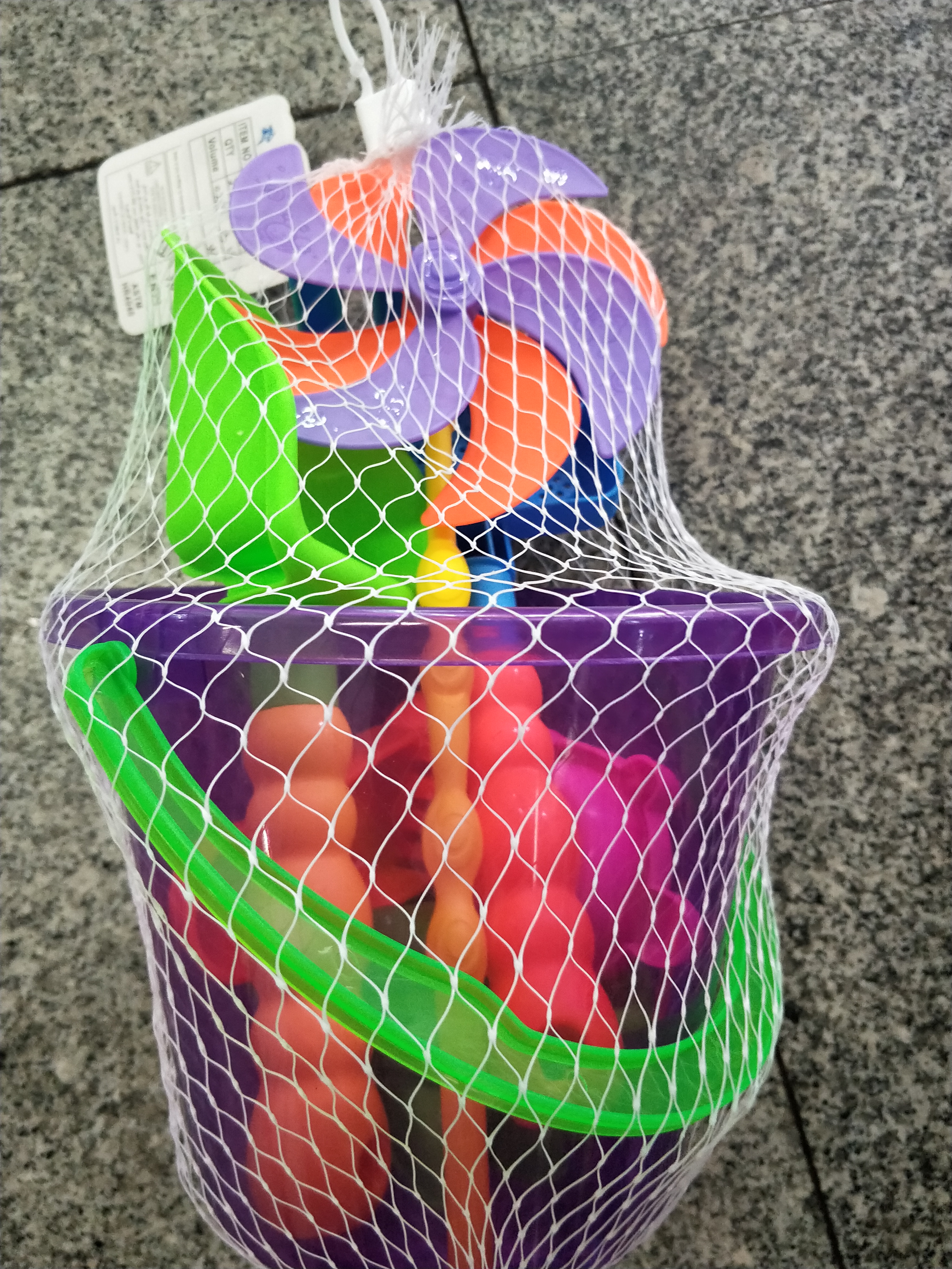 a variety of beach bucket suit toys.