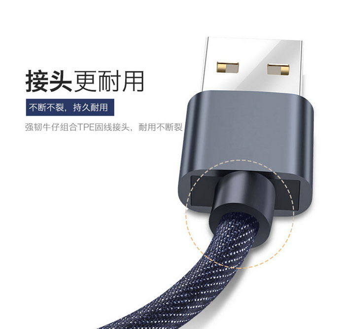 About Product:Ultra-strong compatibility, charging + data transmission combo function, bold copper conductor, speed charging mode, high-quality denim, durable, more powerful imports of cowboy, greatly enhance the service life, light and durable do not knot.