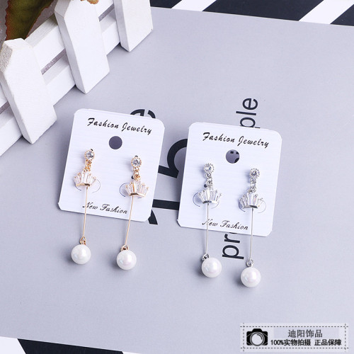 Pearl Long Earrings Women's Temperament Wild Sweet Earrings Anti-Allergy Fashion Zircon Ear Stud Earrings