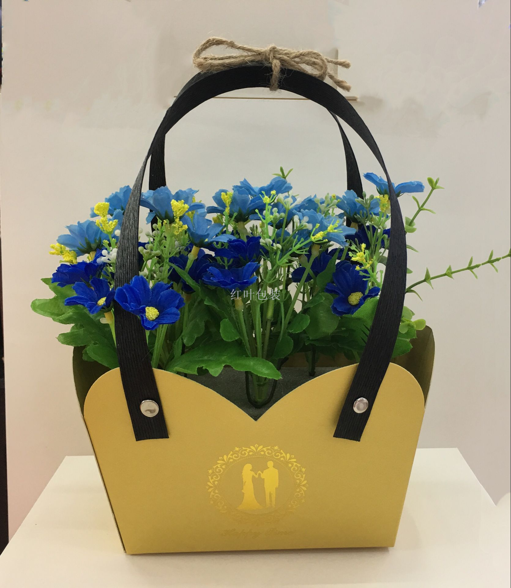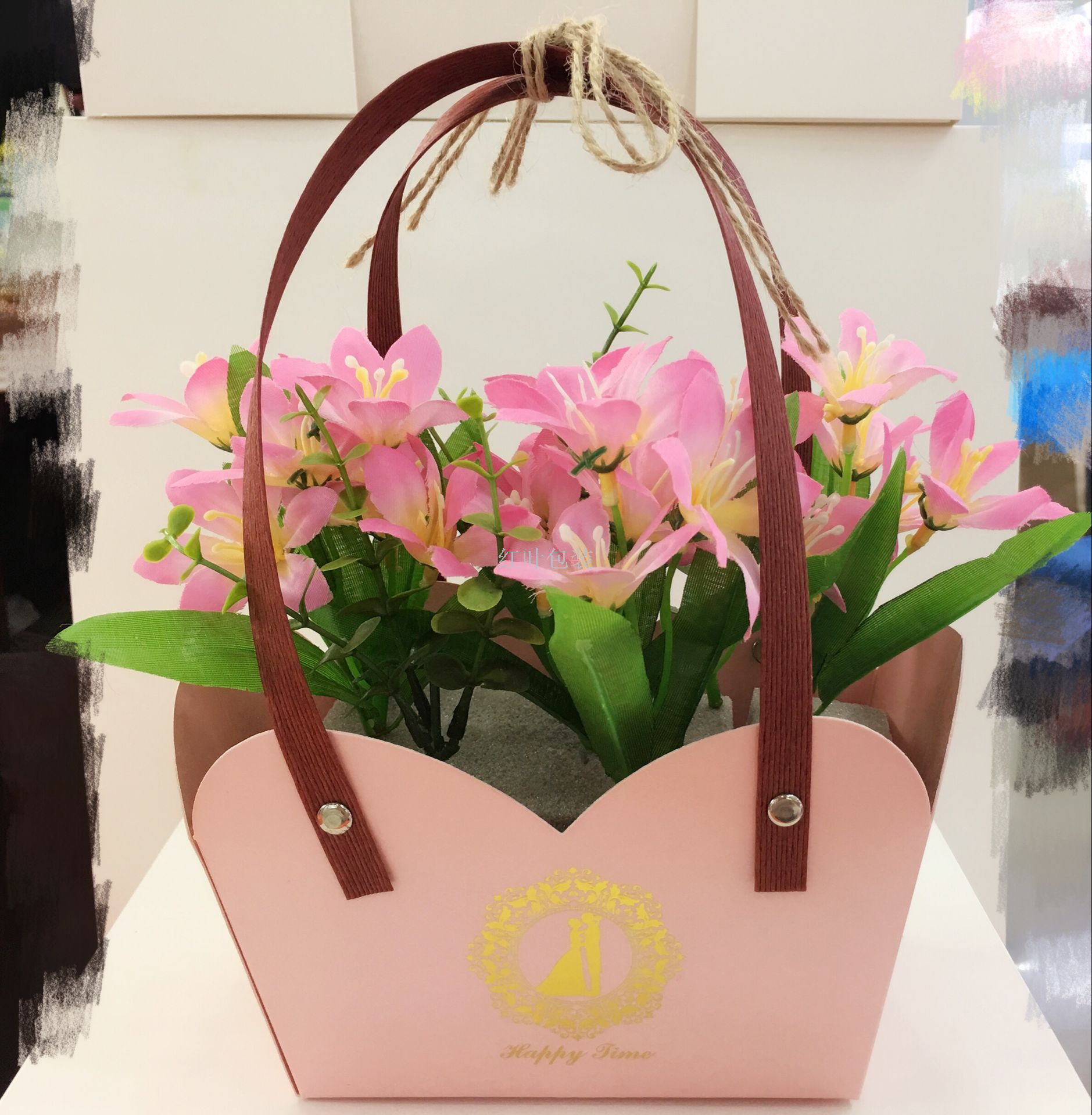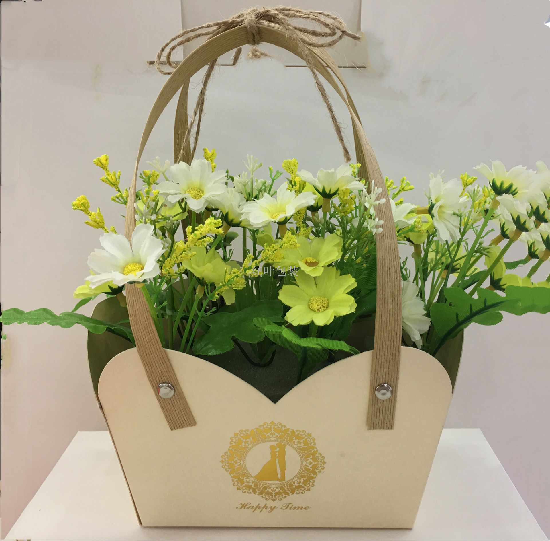 Wholesale custom LOGO flower baskets gift boxes kraft paper boxes candy snack packaging boxes, kraft paper 6 color options hemp rope binding rivet design firm and beautiful logo can be customized, general wedding love baby bottom firm paper thick