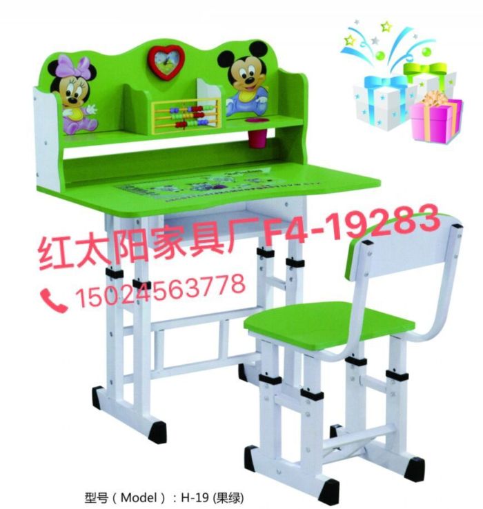 Guolu Pattern students desks and chairs, with alarm clocks and pen, bright colors, highly adjustable