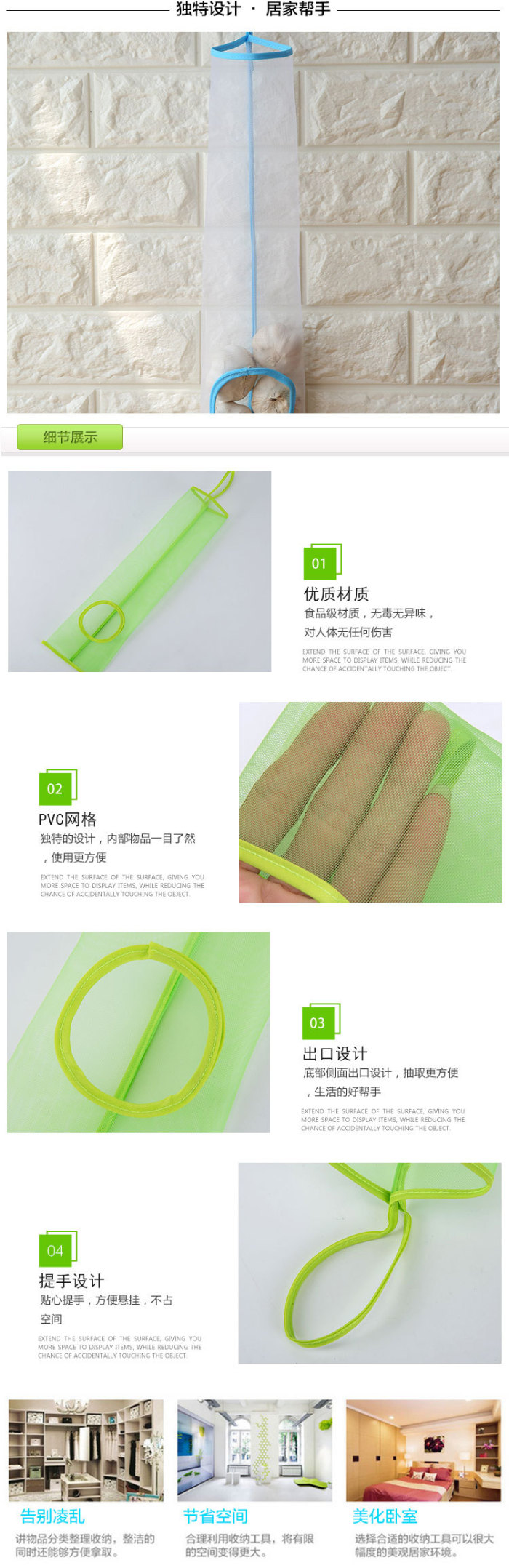 Hanging-Type Fruit and Vegetable Grid Storage Bag Garlic Onion Ginger Buggy Bag Garbage Bag Buggy Bag