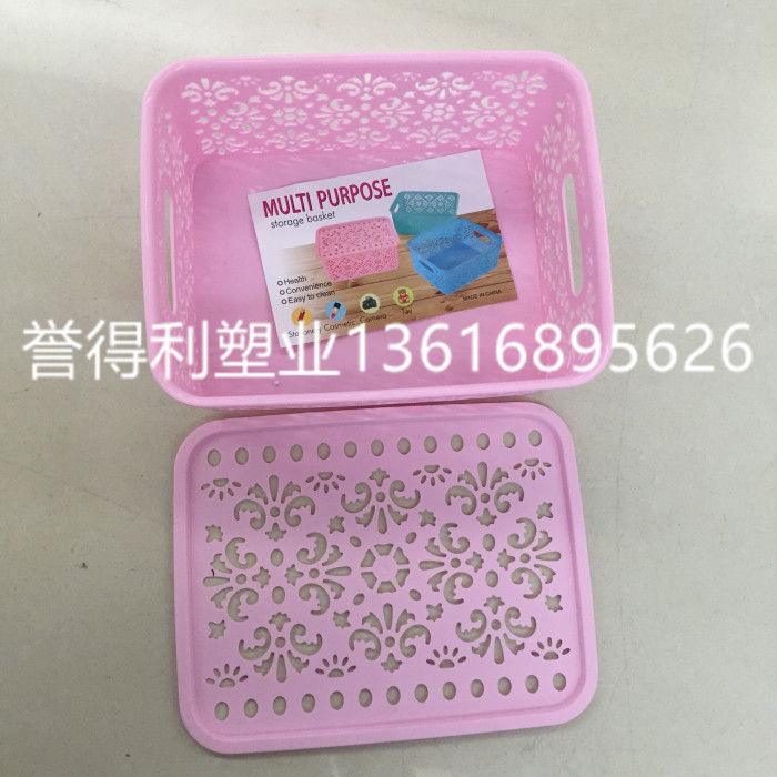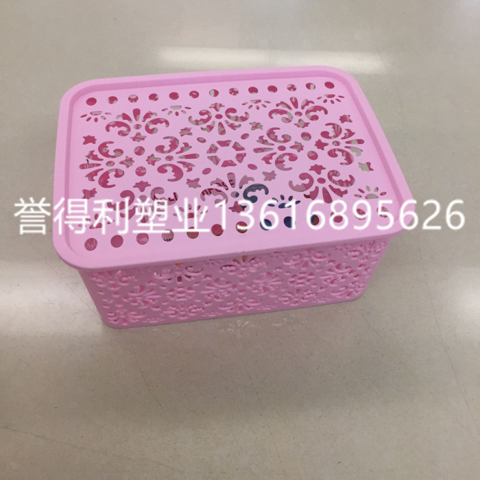 New plastic basket with cover DH0909 small hollow flower type storage basket storage basket