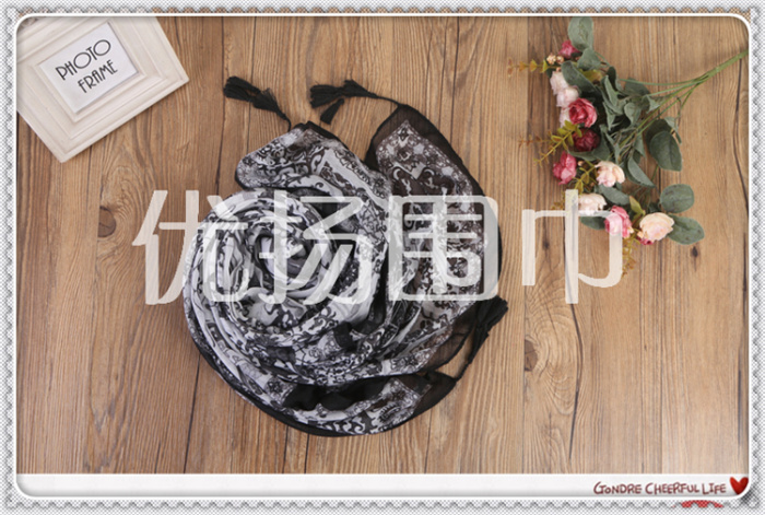 Product Name: Fashion Spring, Autumn and Summer Square Scarf and Necktie - Vintage Pastoral Floral Print, Fresh and Clean Colorful Tassel Scarf
