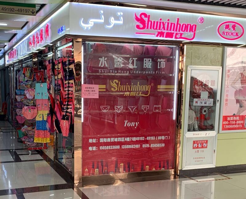 Our company is located at shop 49192-49193 on the 4th floor of Street 21 in Zone 4 of Yiwu International Trade City. We operate a combination of production and sales. Our main products are:Women's underwear, g-string, leggings, men's underwear, underwear for boys and girls, sets of boys' and girls' undershirts, girls' undershirts.In-stock stocking underwear, export underwear.