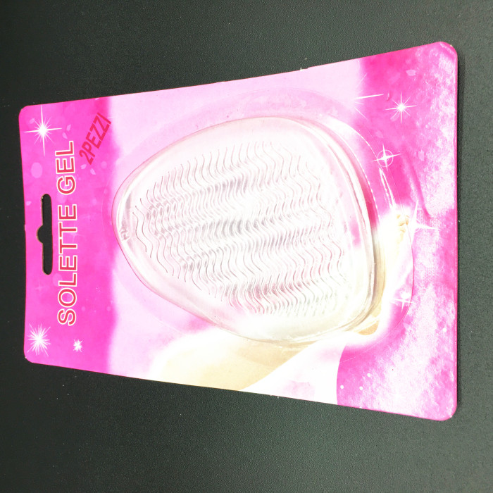 材质和功能性:整片由硅胶压制而成,柔韧有弹性。正面浮凸波纹,缓冲、按摩、止滑,脚感舒适。背面光洁平面,利用硅胶自身附着力吸附在鞋里,不用胶。附着牢固而又揭取方便,无残留。放平跟鞋可以止滑,按摩脚底。