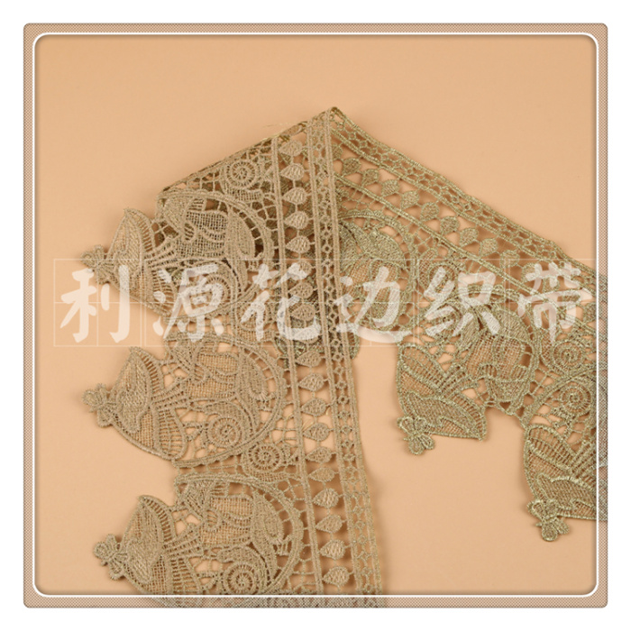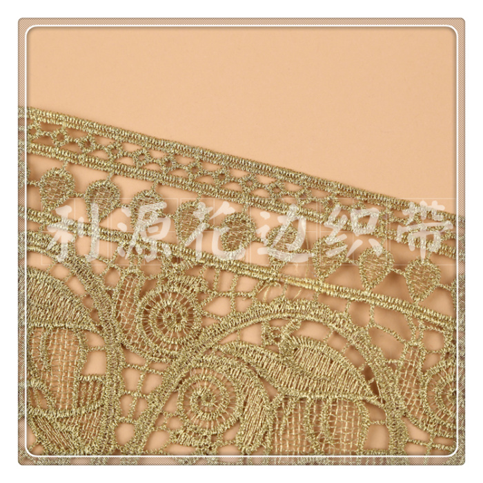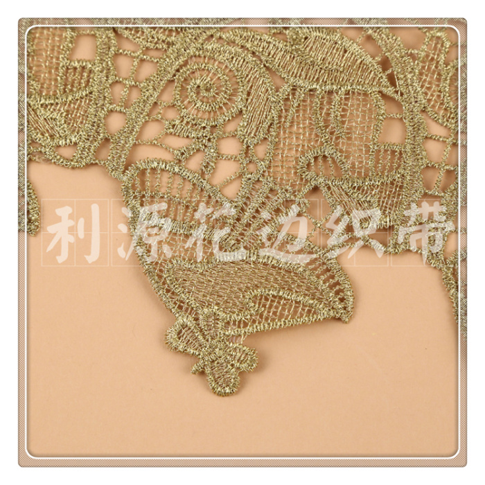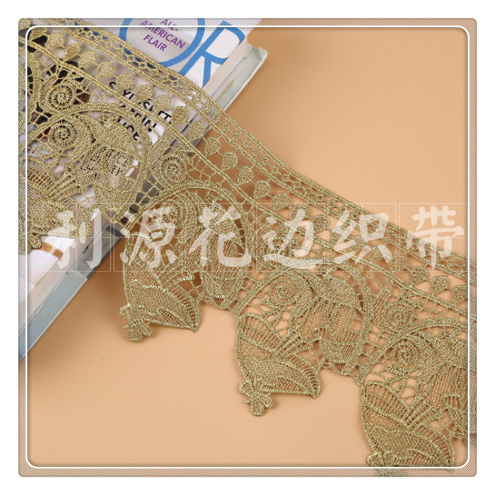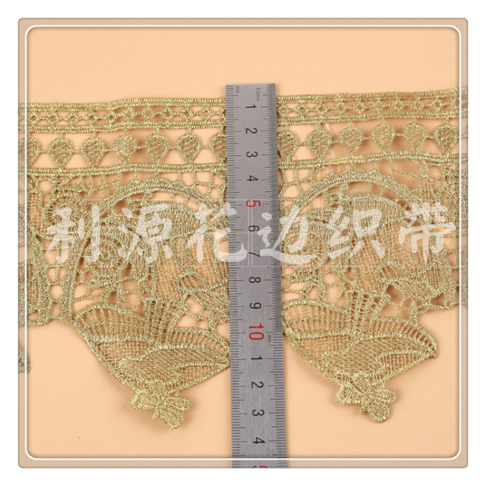 Product Name: DS245-6# Lattice-patterned Golden Filament Water-soluble Lace Edge, 13 cm wide