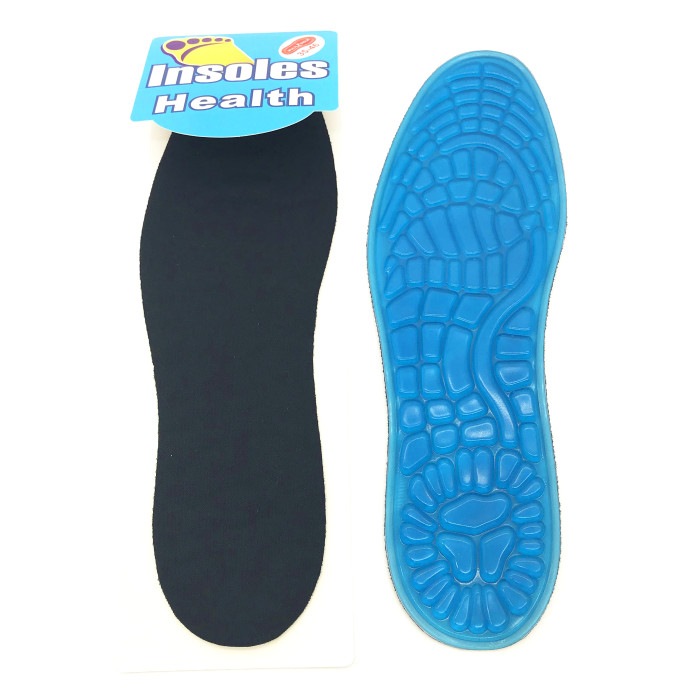 货号:8352936                         材质:凝胶                              推荐鞋型:宽松休闲 、运动鞋等                                   颜色:蓝黑色                             护理方式:温水或冷水清洗                                                                               功能分析:透气舒适、缓震减压,按摩足底。全垫按摩颗粒,脚底舒适,能适应严寒和炎热的环境。