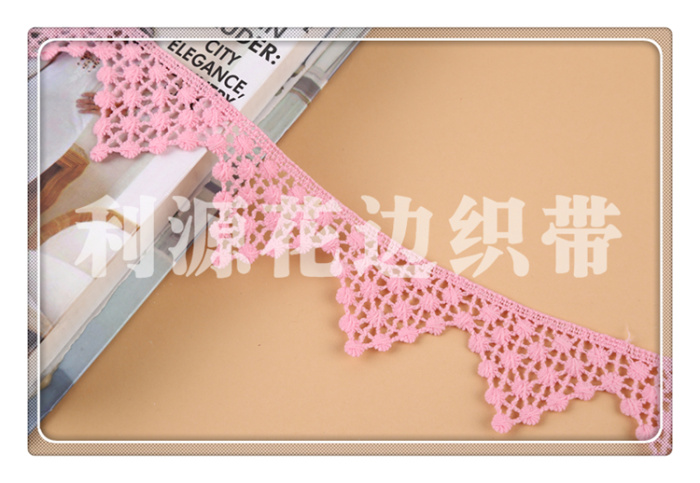 Product Name: 4.5CM Unilateral Large Wave Triangle New Style Pink Water-soluble Embroidery Milk Silk Bar Code Lace