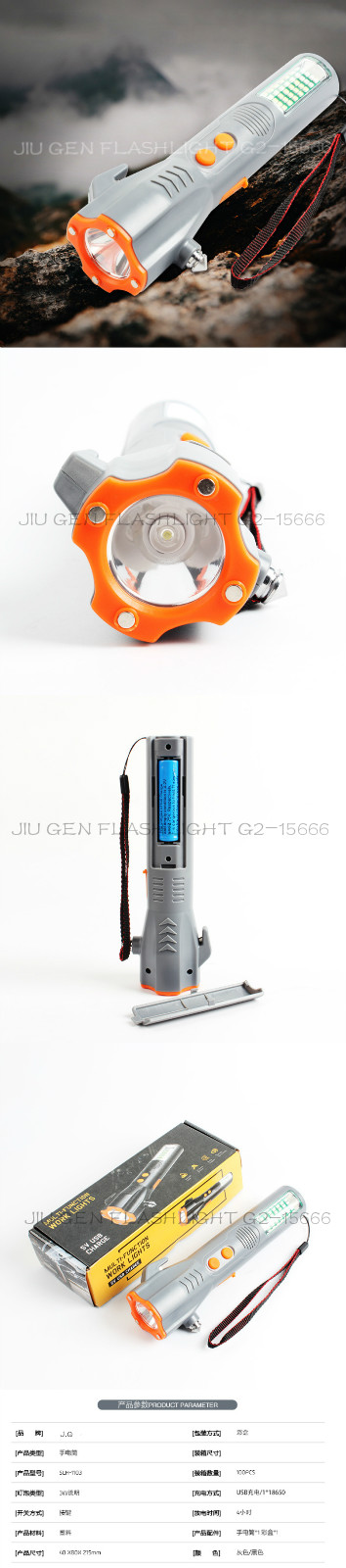 About Product:Specification: 21.5*8*4cm light bulb: 3W lumen power supply: USB charging /1*18650 color: gray/black