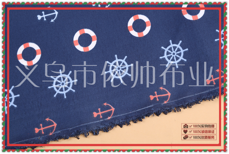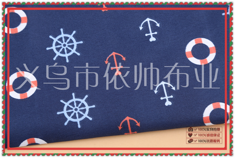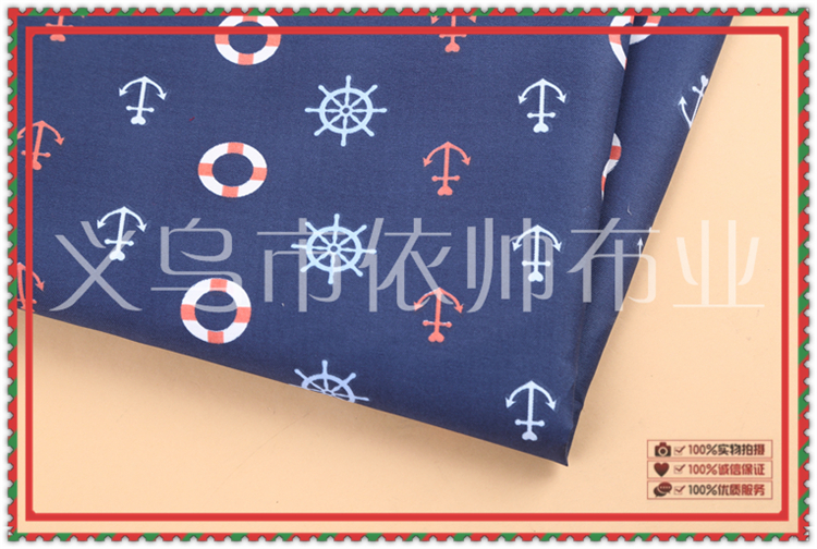 Product Name: Ocean Wind Printed Pattern Deep Blue Needle-punched Fabric Made of 100% Cotton with Eco-friendly Reactive Dyeing Technology
