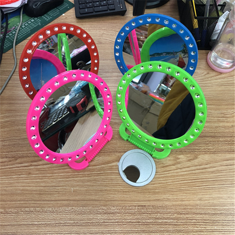 Manufacturer direct selling pearlescent color round mirror plastic mirror dual shop yiwu small commodity daily goods.