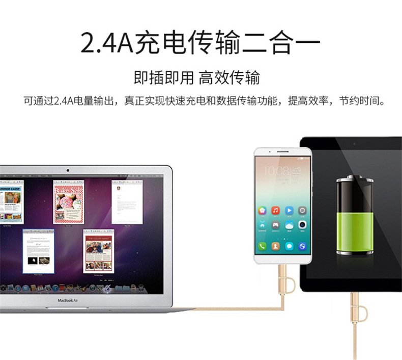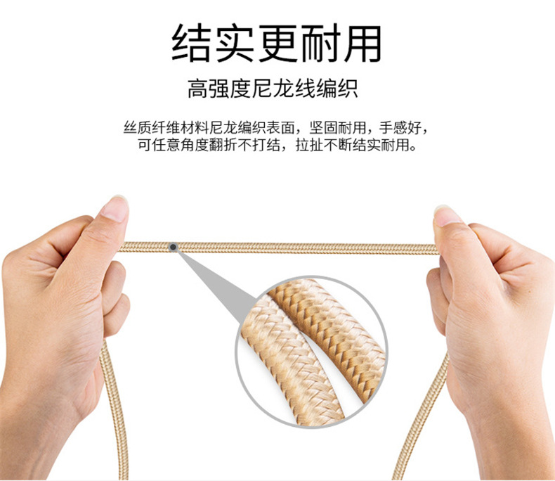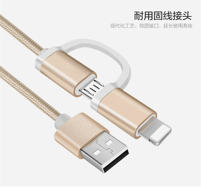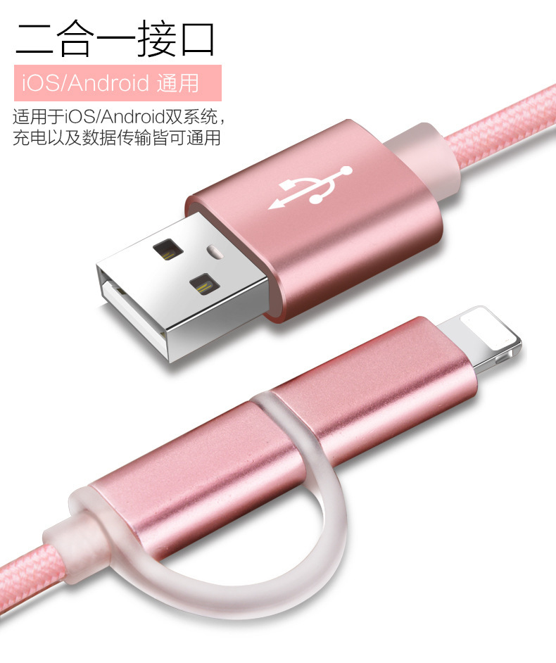 Jhl-sj005 metal nylon two-in-one mobile data cable for android apple X/8/7/6S...
