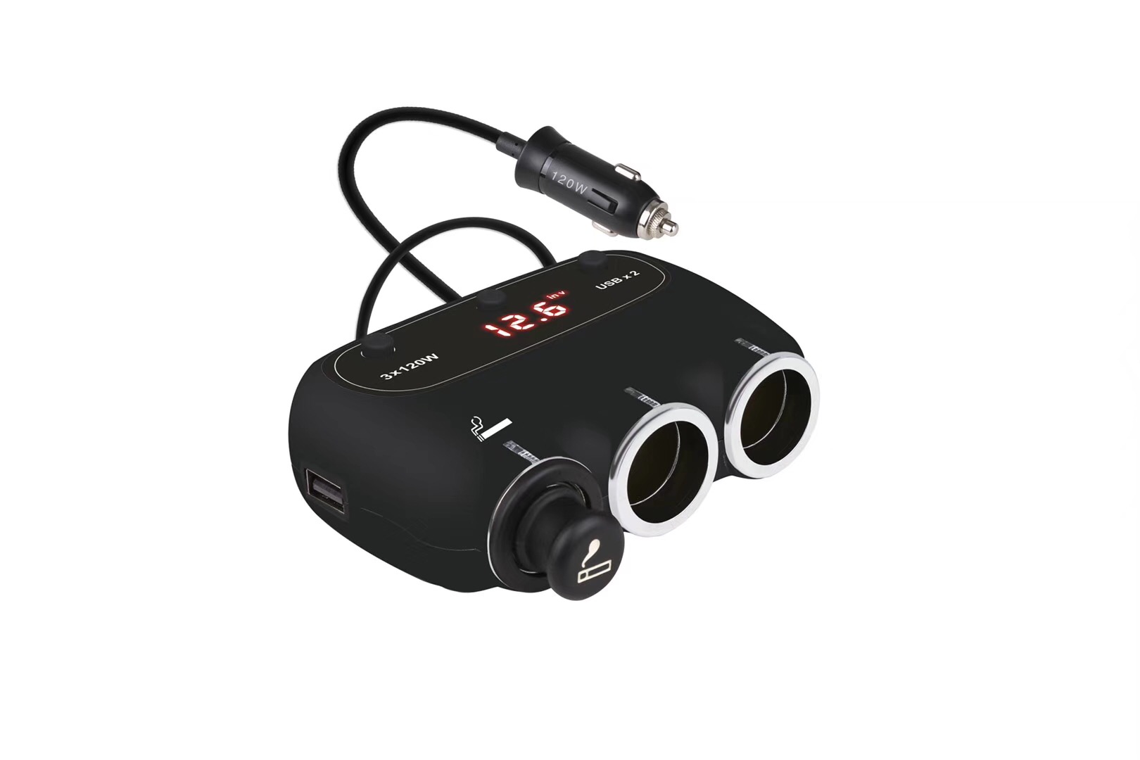 Auto one tow three cigarette lighter independent switch one minute three distributor dual usb car charger with display screen
