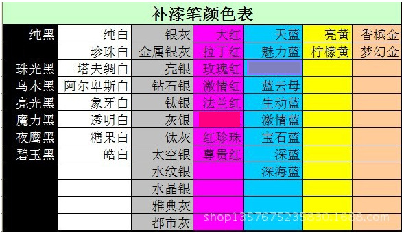 The following table is all the color forms for the finishing pen. Please note the color and do not remark the random shipment.