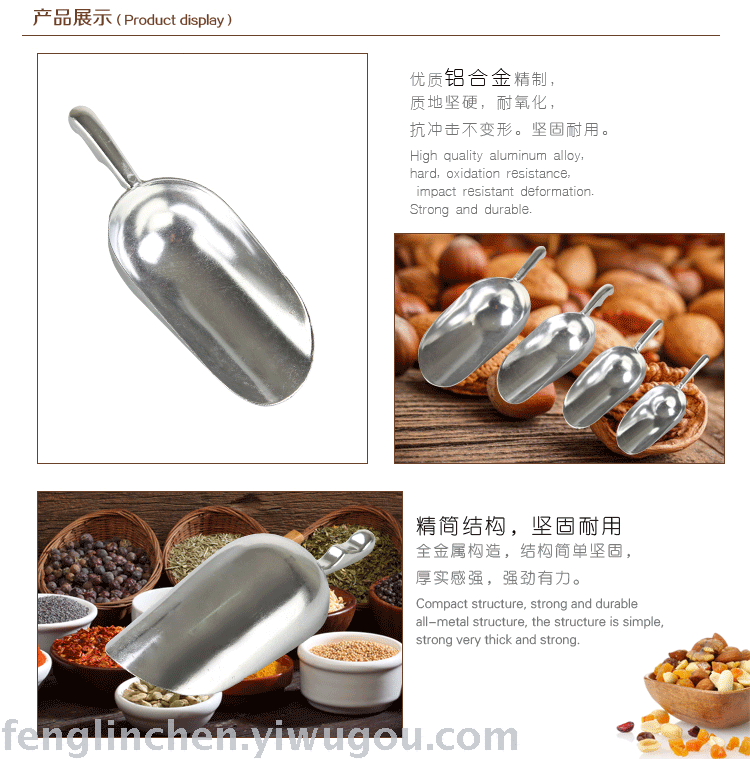 kitchen utensils aluminum alloy four sizes ice scoop flour shovel grain shovel ice cube shovel french fries shovel multi-purpose shovel