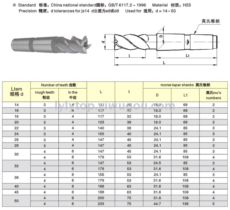End mills with morse taper shanks