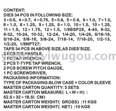 76PCS metric & sae tap and hexagon die set,alloy steel