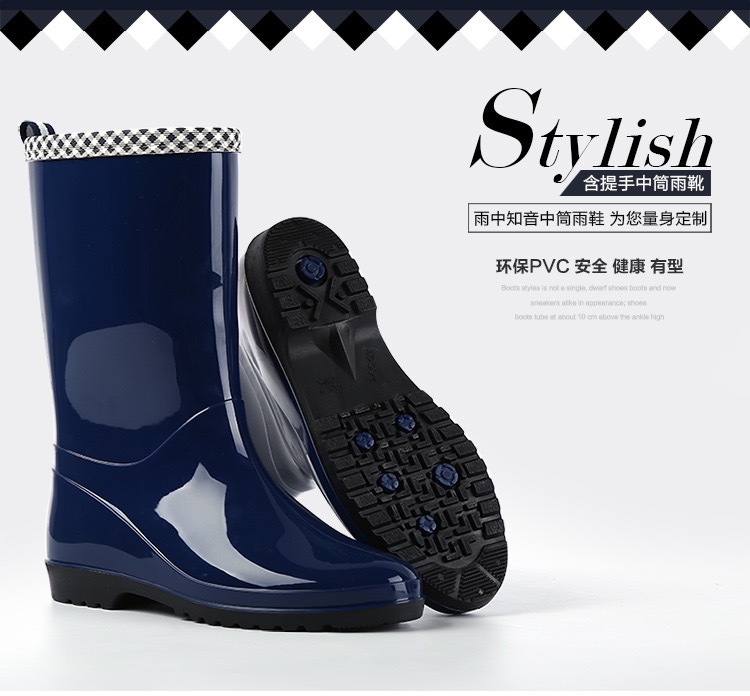 women's student fashion mid-calf rain boots wear-resistant sand paint non-slip rain boots
