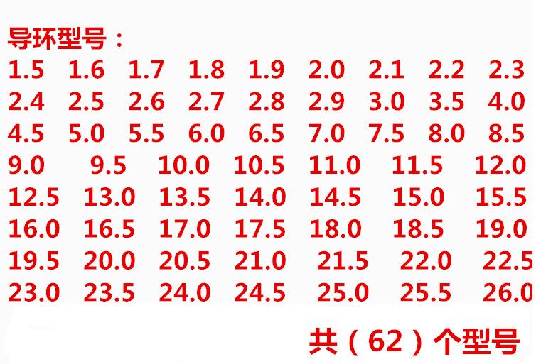 Specifications1.5-2.9 (150pcs), 3.0-8.5 (120pcs), 9.0-14.5 (60pcs), 15.0-20.0 (30pcs)