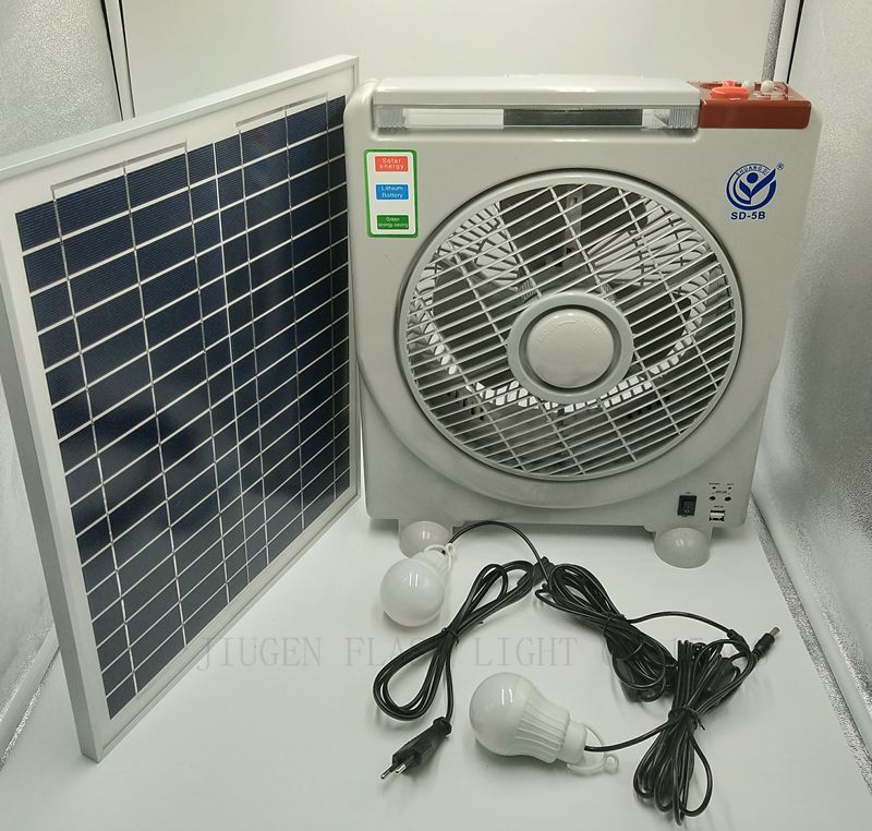 The sd-5b solar fan system lamp has a 30W solar panel.