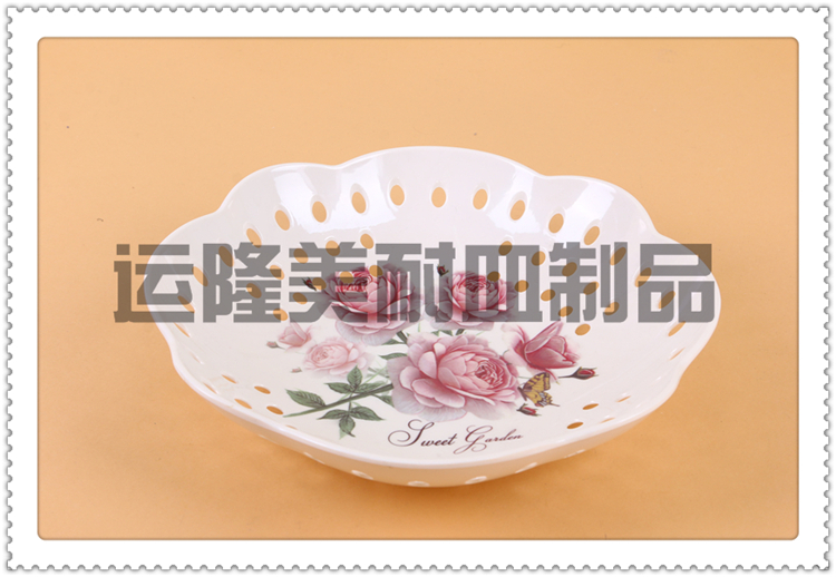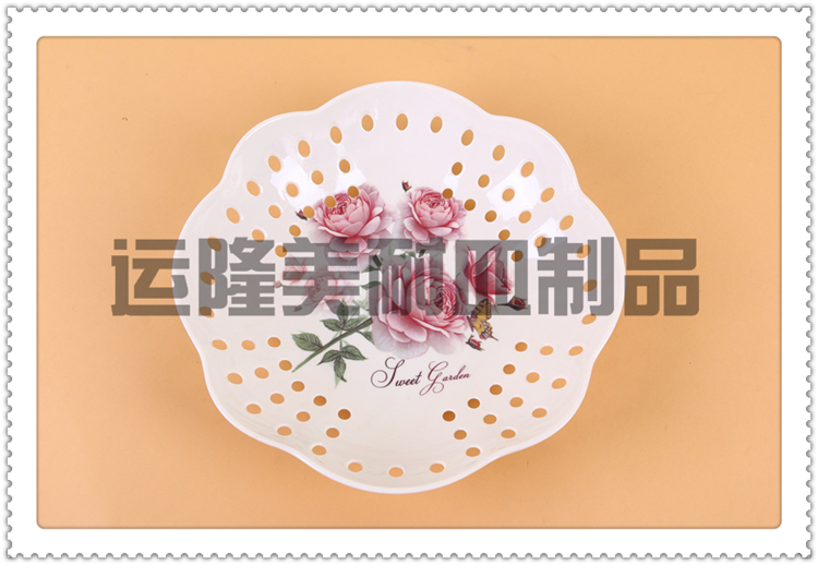 Product Name: Printed Pattern Lattice Mesh Melamine Fruit Bowl Dry Fruit Bowl Candy Bowl Living Room Fruit Snack Plate