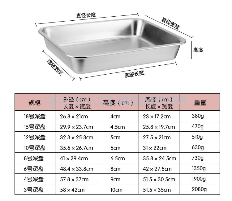 About Product:Thickened and deepened flat tray tray 304 stainless steel square tray bread tray.