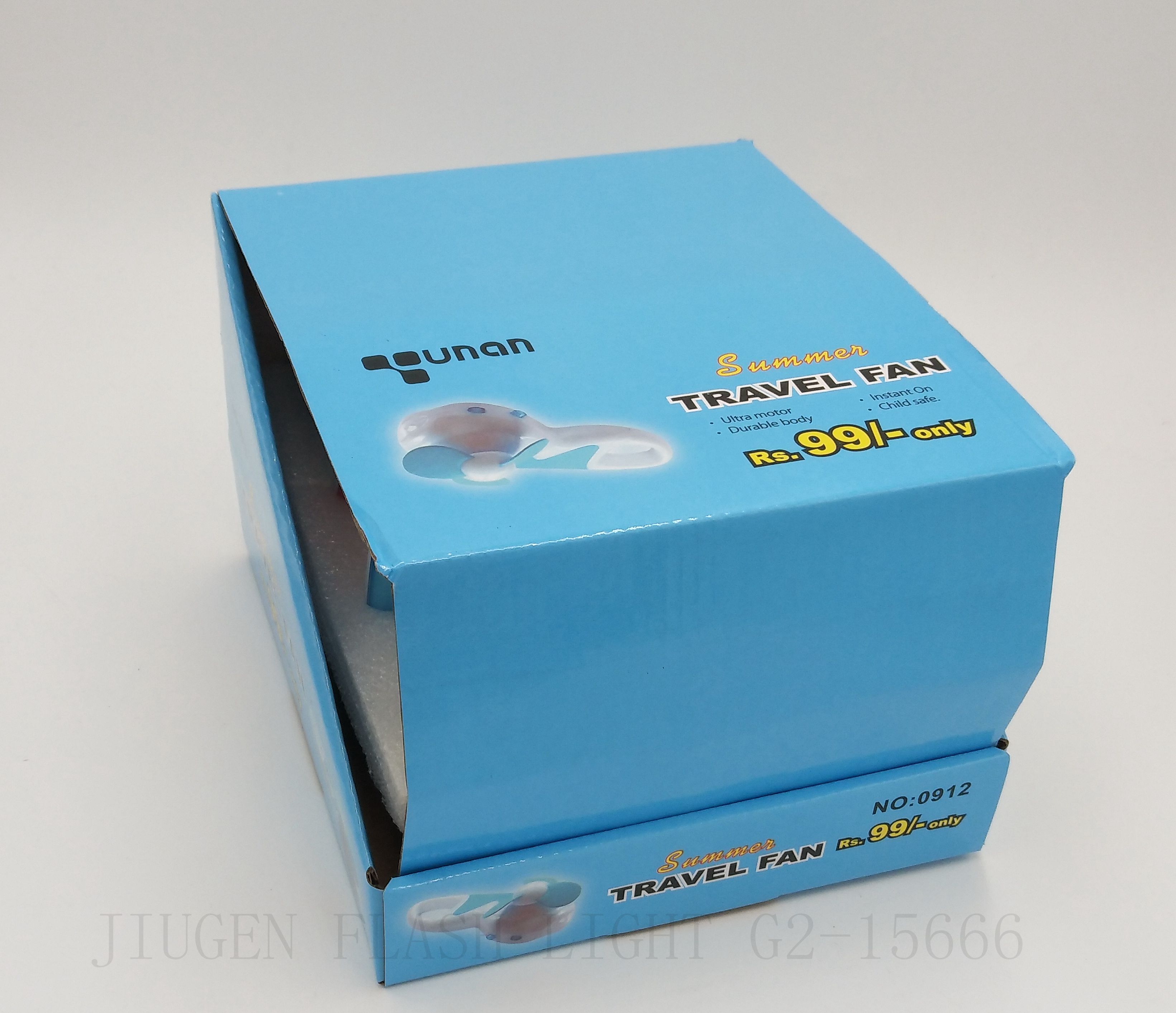Jiugen flashlight 0912 battery mini handheld fan with 1LED light.