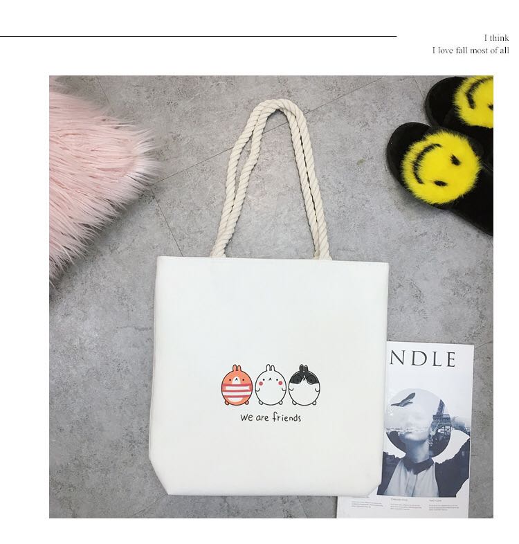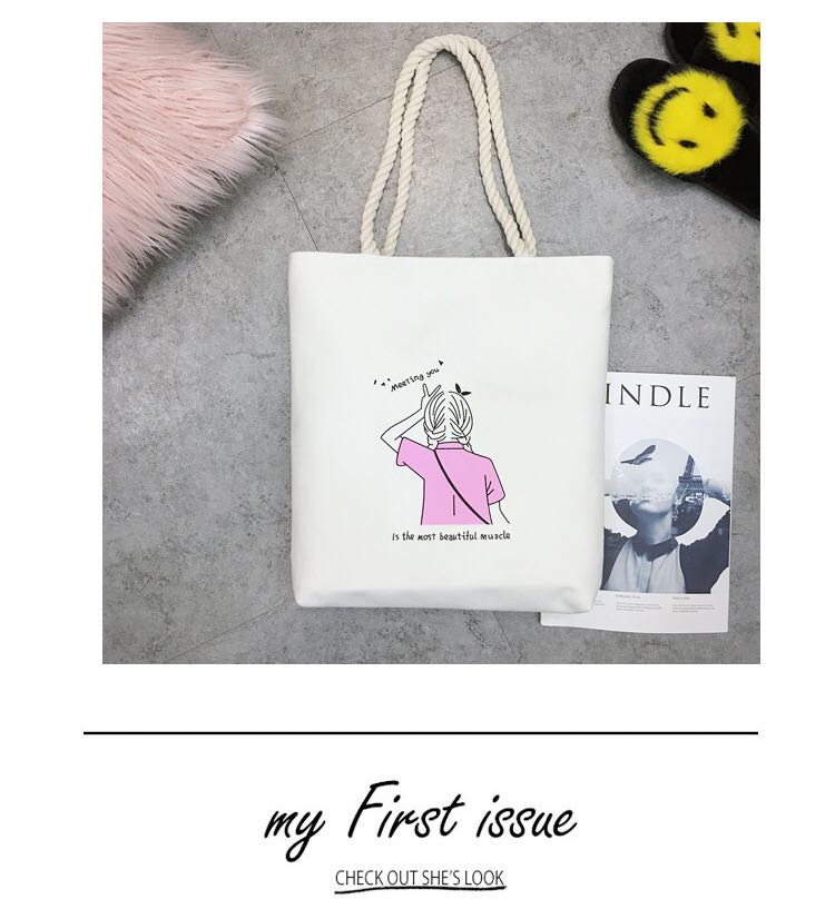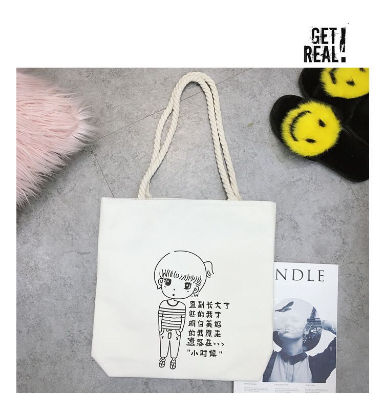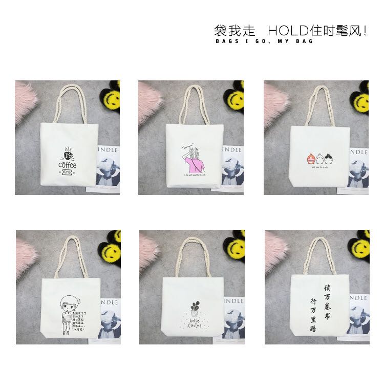 cotton string bags cute casual literary style simple cloth bag shopping bag school bag