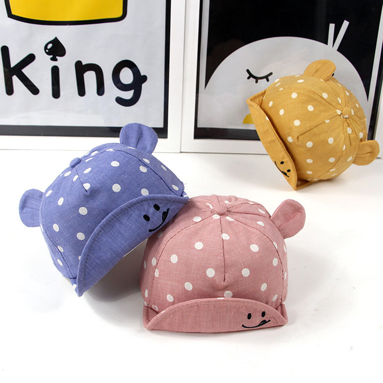 Product Name: Dot Bear Bowler Hat Fabric: 100% Cotton Cap Circumference: Approx. 44-48CM **Size is manually measured and there may be a 1-2CM error, which is normal. Please understand!** Suitable Age: Adjustable size, generally suitable for children aged 0-2 years. The age range is for reference only, please refer to the actual head circumference when purchasing. The new hat is beautifully crafted and adorable. For more details, please contact us.