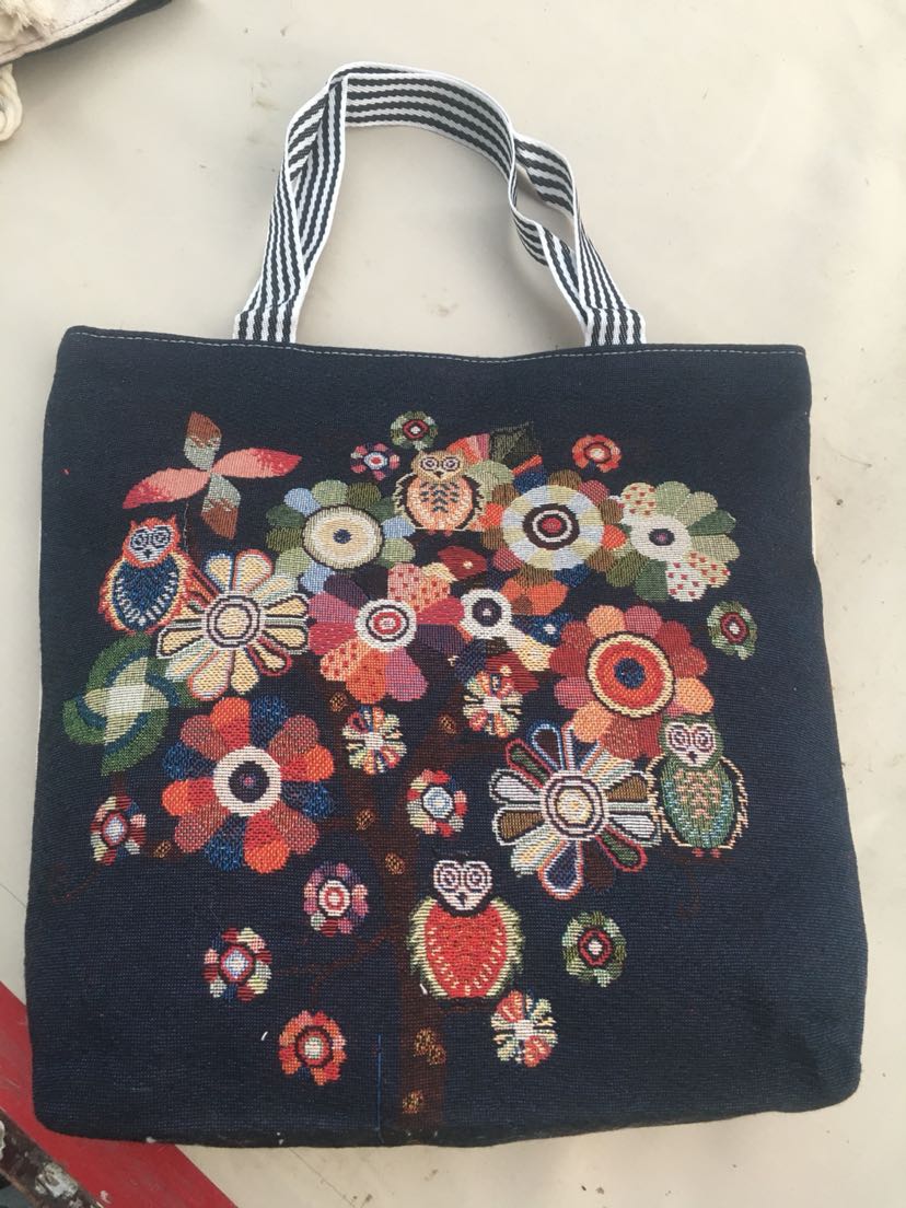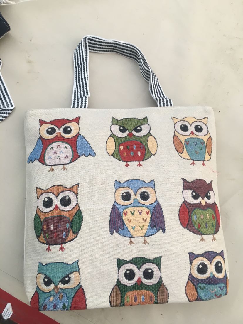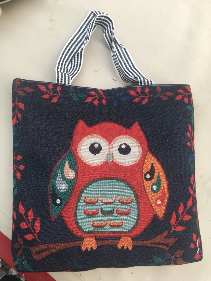 positioning shoulder bag canvas bag ribbon cloth handbag large capacity cloth bag owl pattern