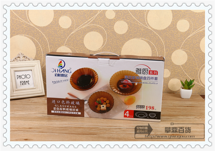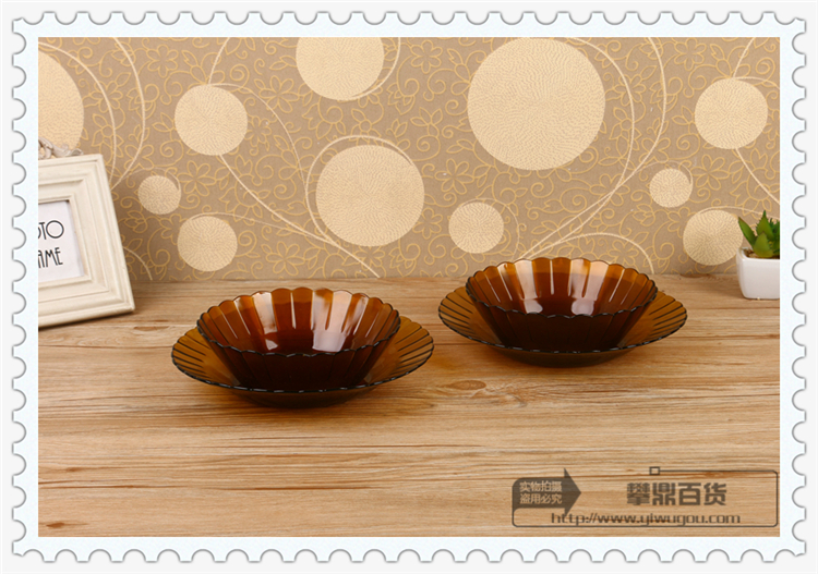 four-piece set of lotus glass bowl and plate of elegant kitchen series imported colorant glass supermarket exclusive supply