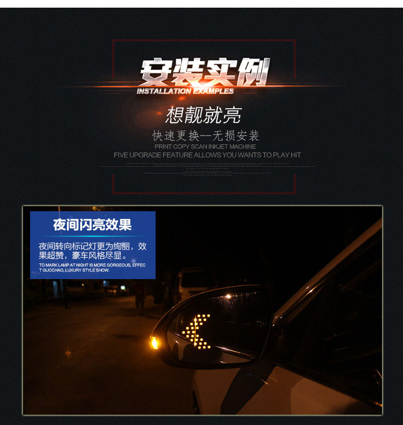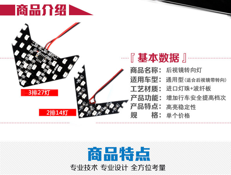 1、此款产品为汽车后视镜转向灯,安装在后视镜的位置,14灯不会闪的,需闪的话是33灯.