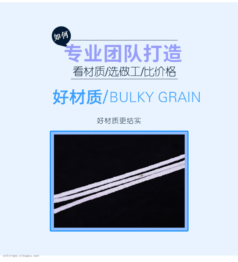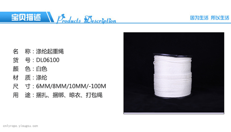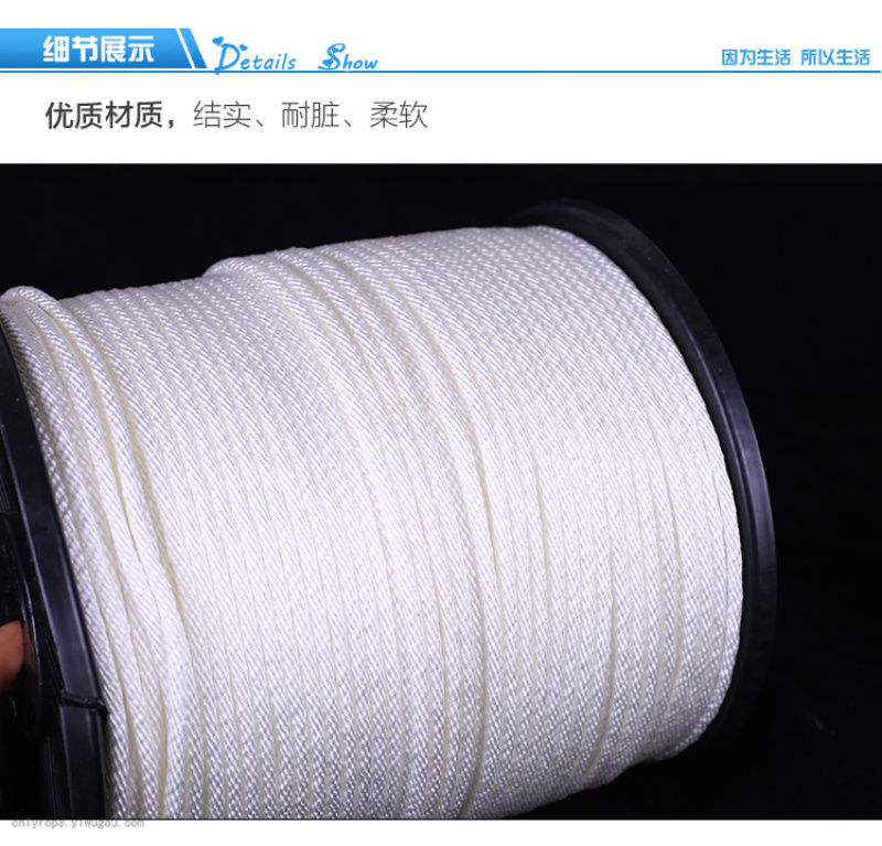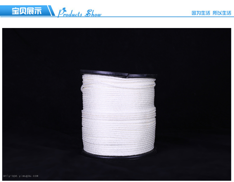 New material high-strength polyester rope, color selection, conventional thickness 4mm/6mm/8mm/10mm, length 100m large Chuck packaging, color thickness length can also be customized according to customer requirements. Chuck long shoelace series is popular in European and American markets. Welcome to consult and purchase.